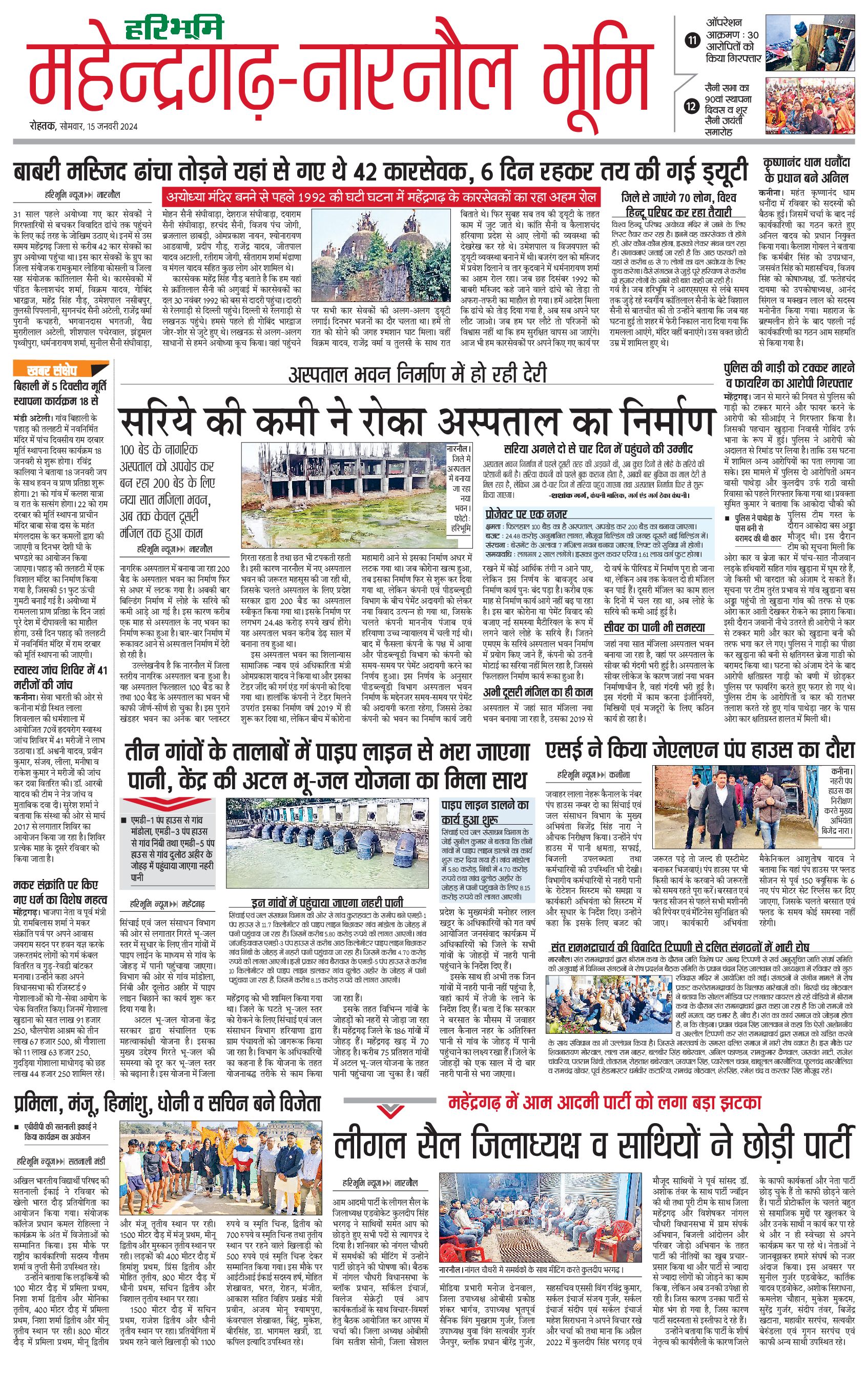 महेंद्रगढ़ - 15 Jan 2024 - - Page 1