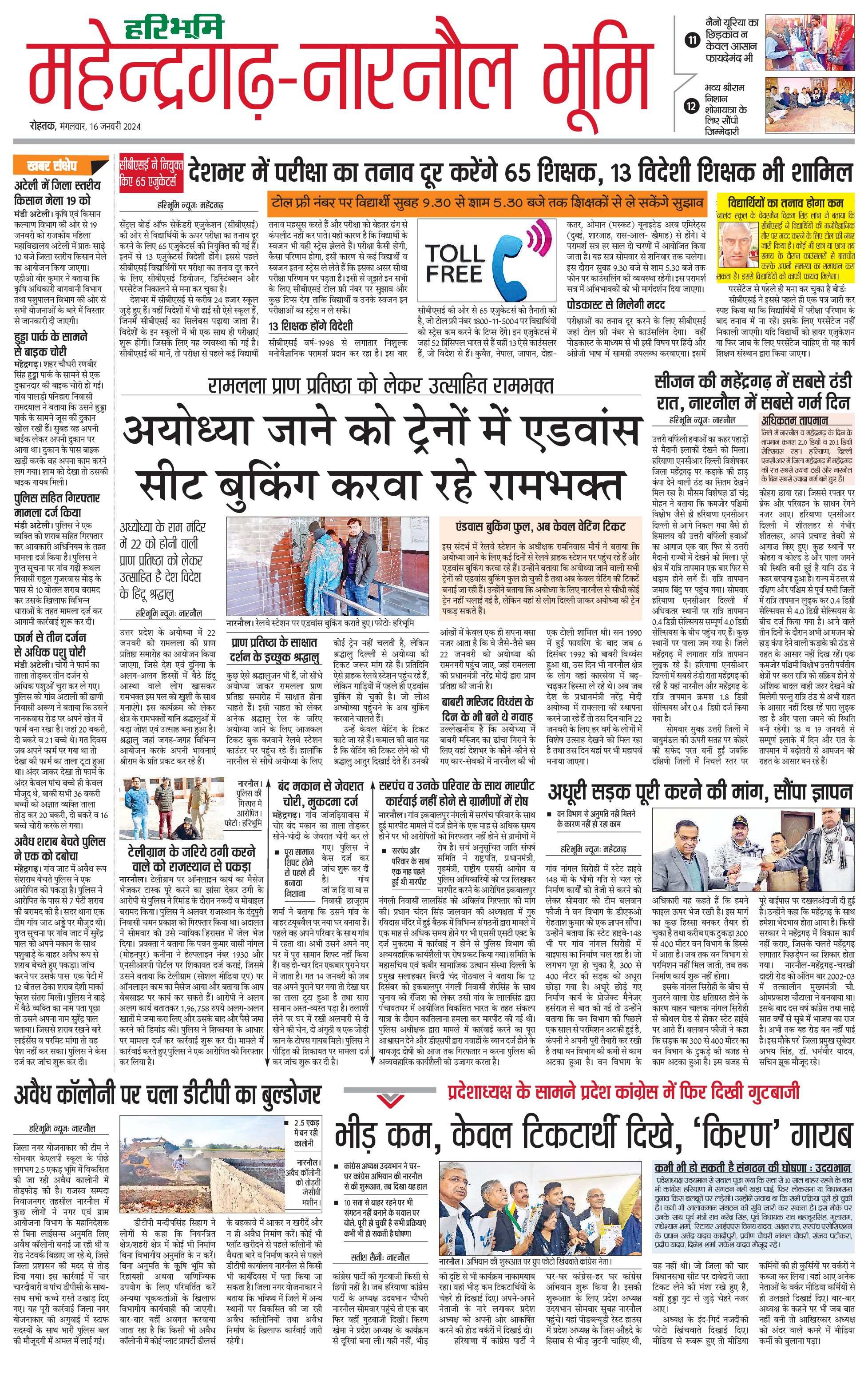 महेंद्रगढ़ - 16 Jan 2024 - - Page 1