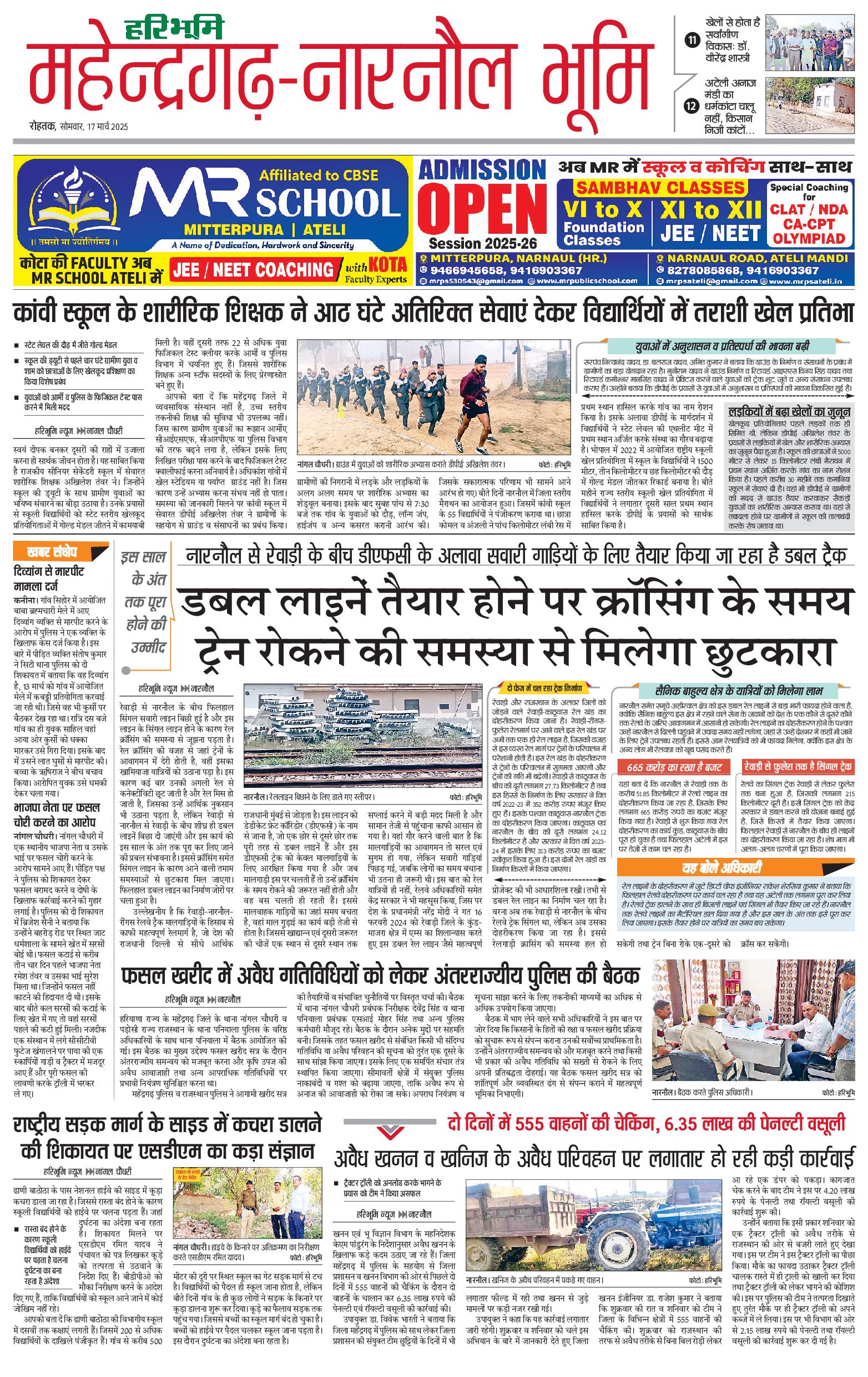 महेंद्रगढ़ - 17 Mar 2025 - - Page 1