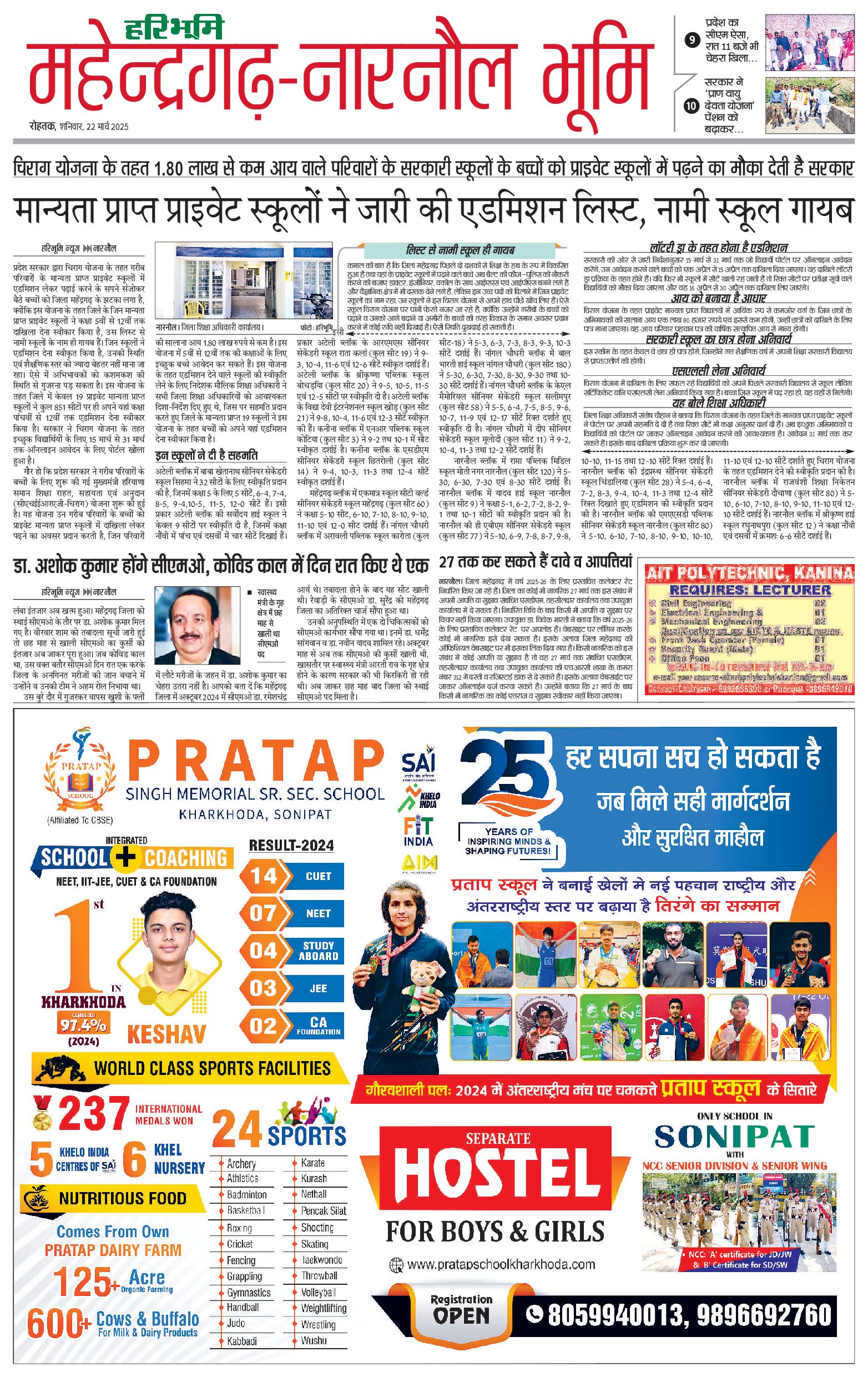 महेंद्रगढ़ - 22 Mar 2025 - - Page 1