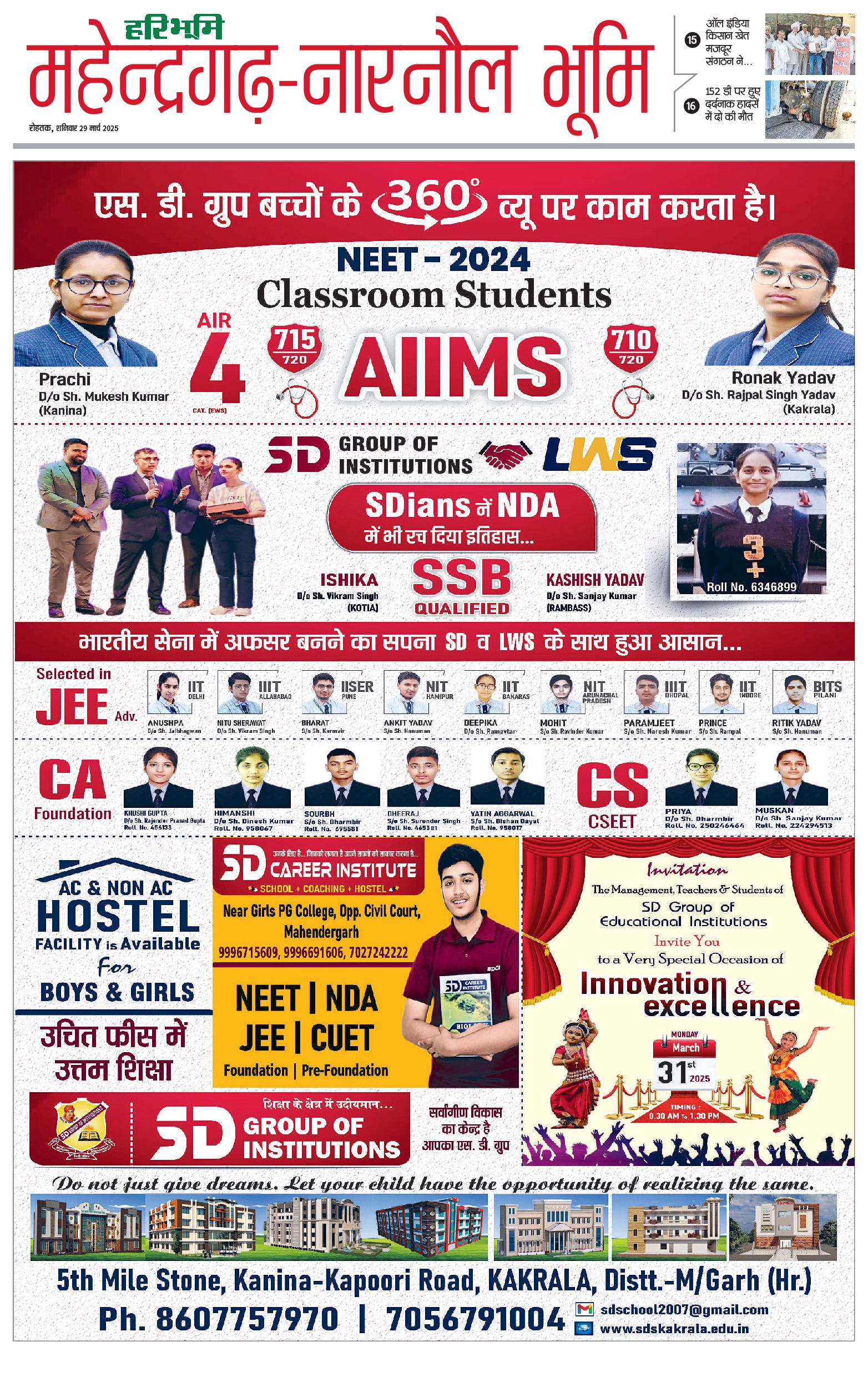 महेंद्रगढ़ - 29 Mar 2025 - - Page 1