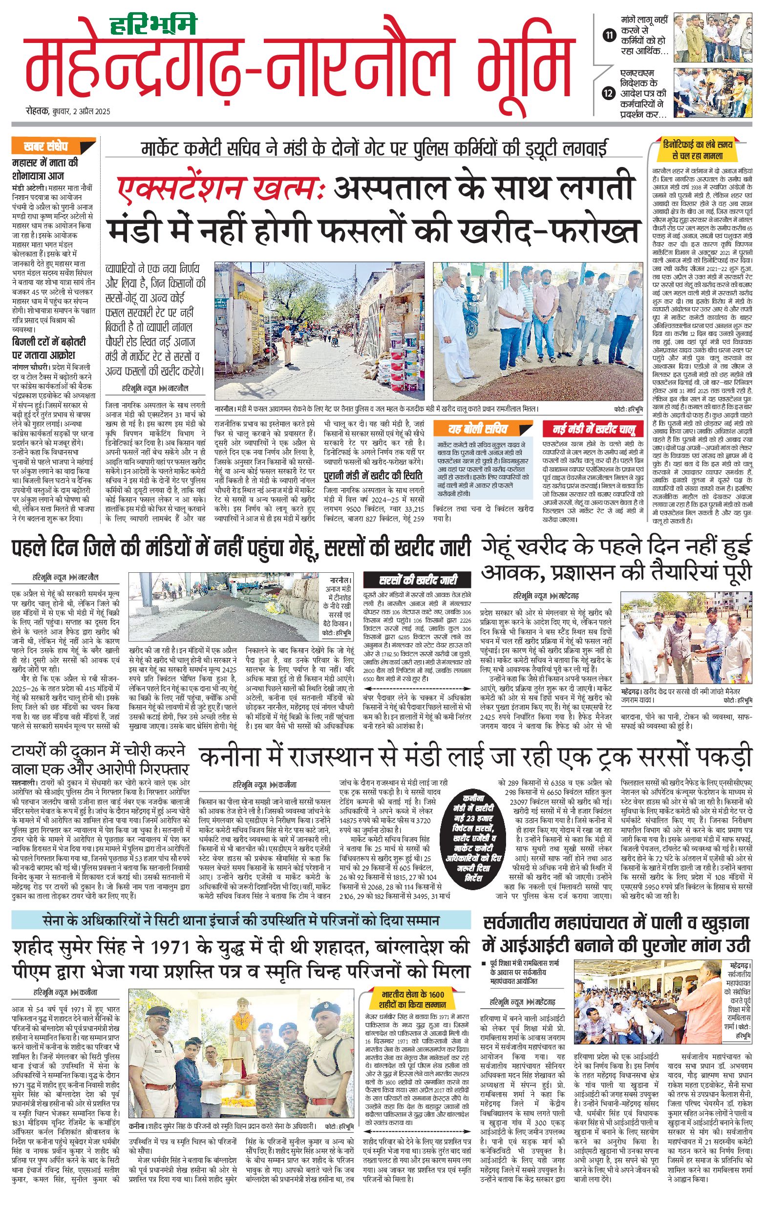 महेंद्रगढ़ - 02 Apr 2025 - - Page 1