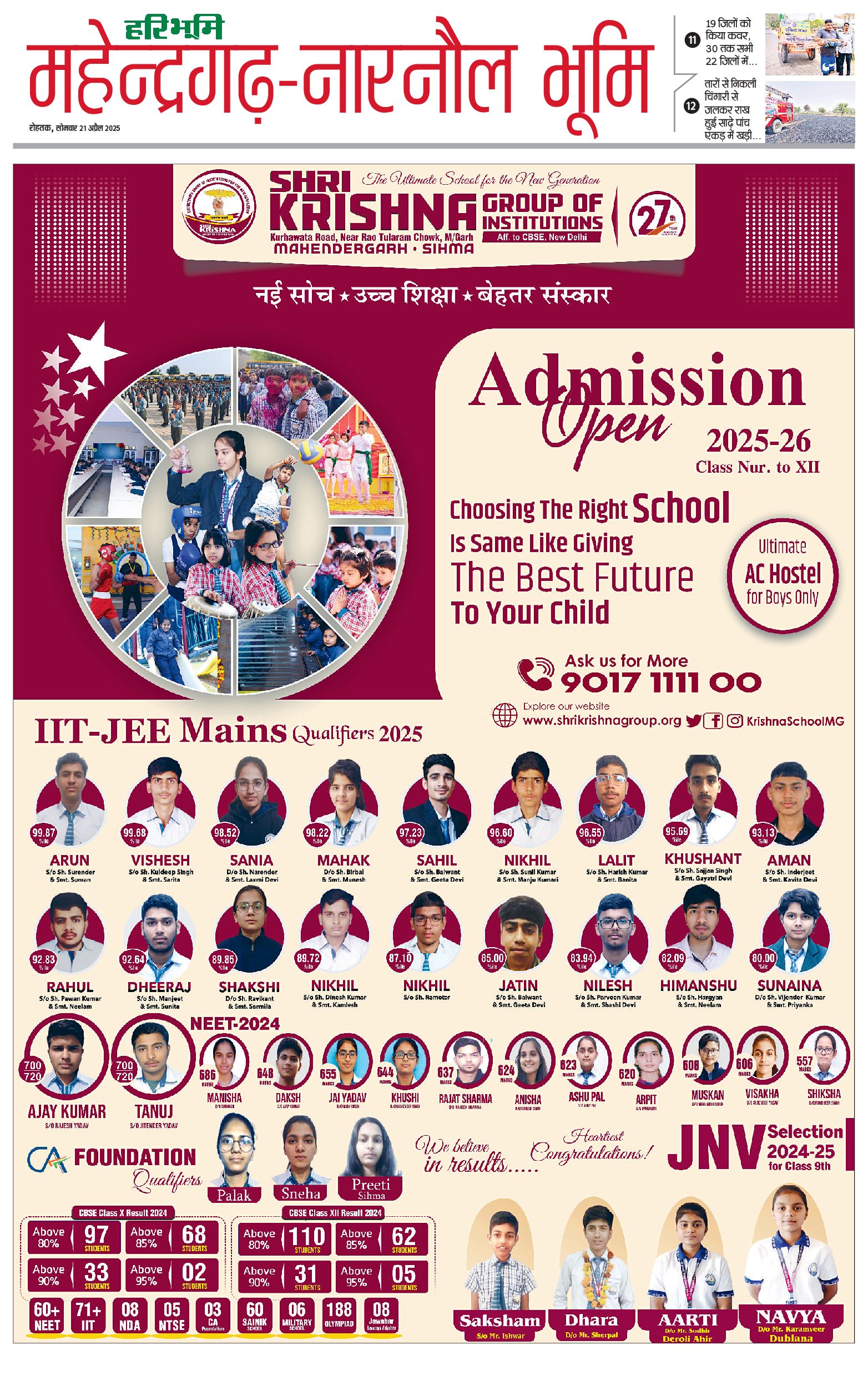 महेंद्रगढ़ - 21 Apr 2025 - - Page 1