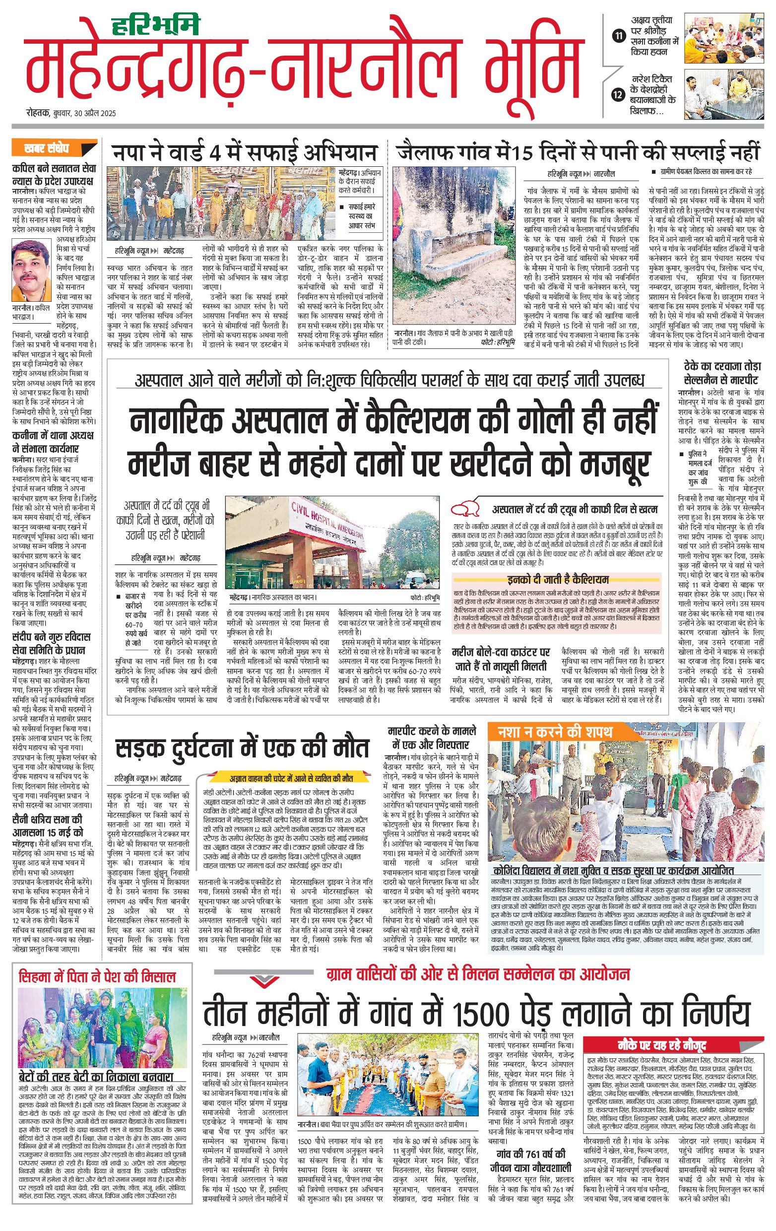 महेंद्रगढ़ - 30 Apr 2025 - - Page 1