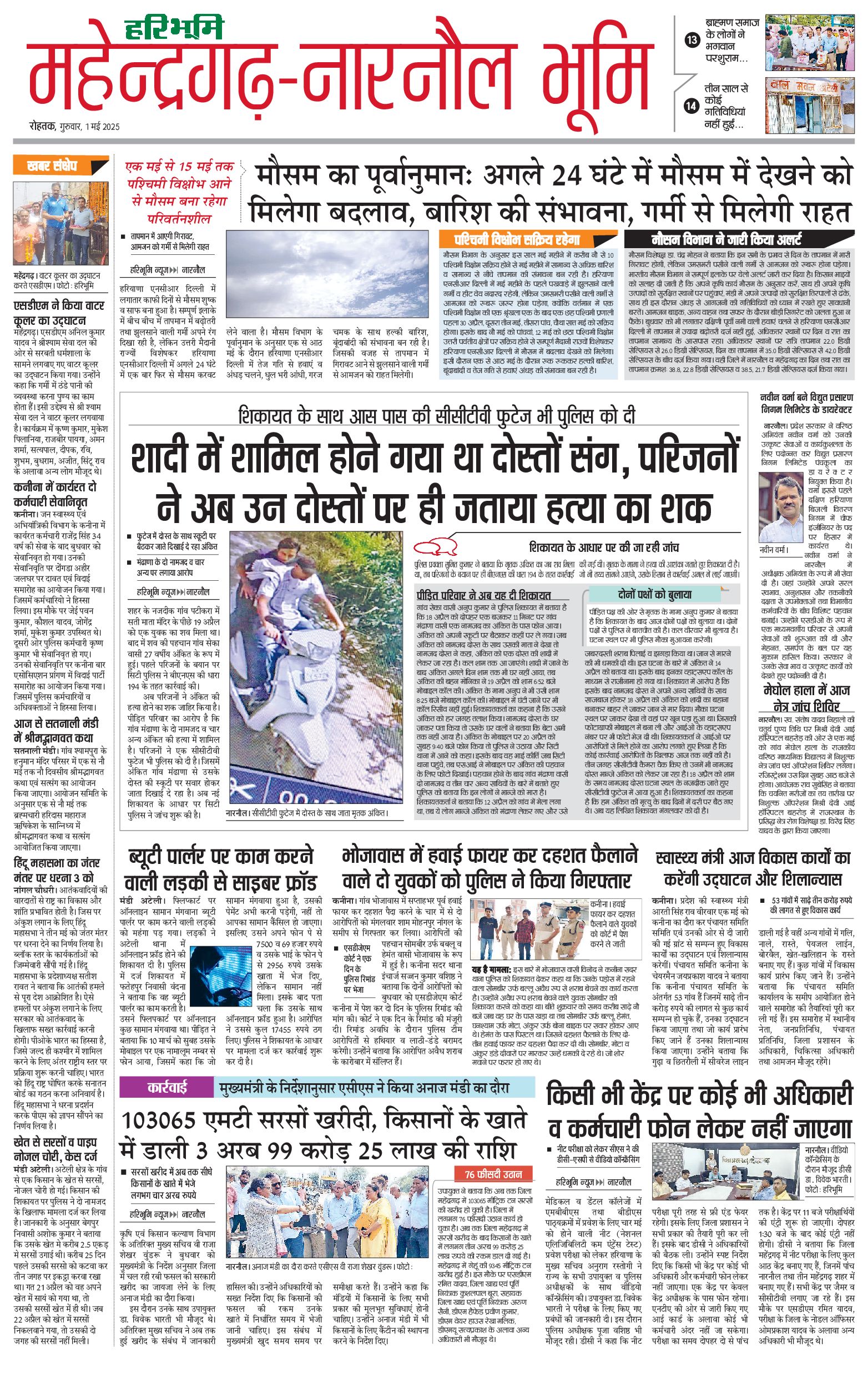 महेंद्रगढ़ - 01 May 2025 - - Page 1