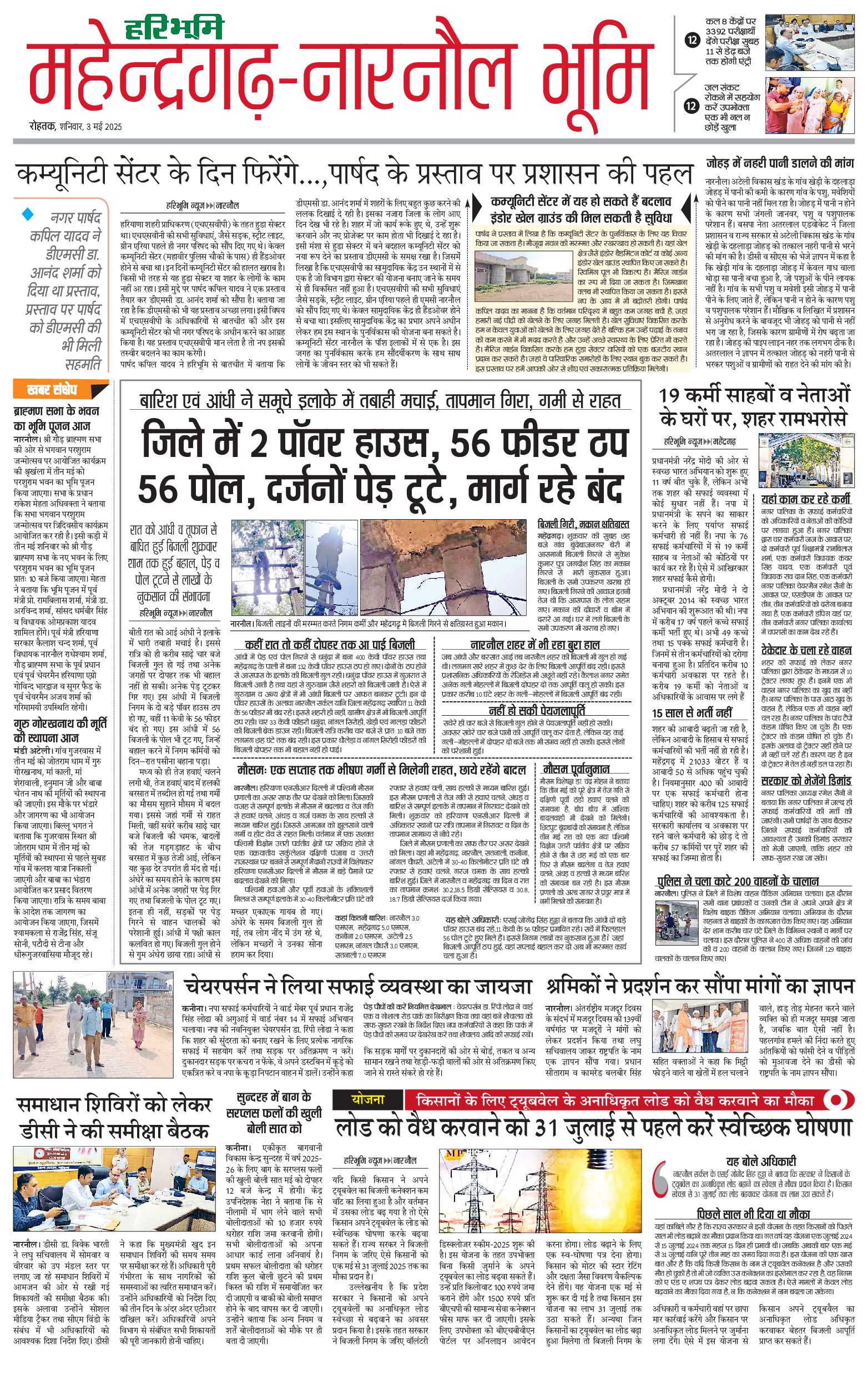 महेंद्रगढ़ - 03 May 2025 - - Page 1