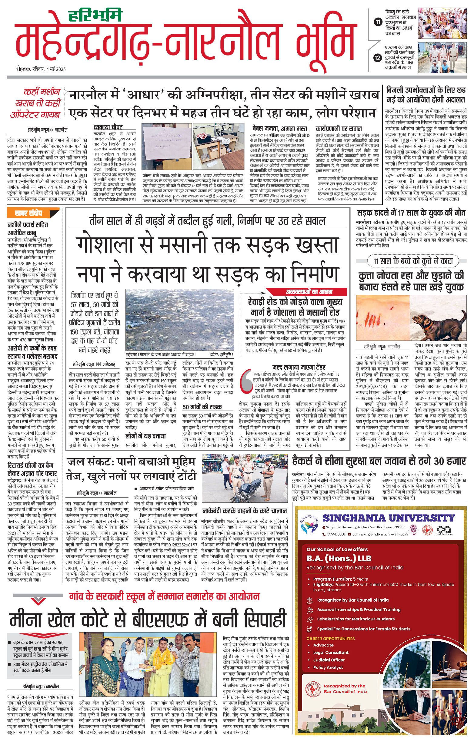 महेंद्रगढ़ - 04 May 2025 - - Page 1