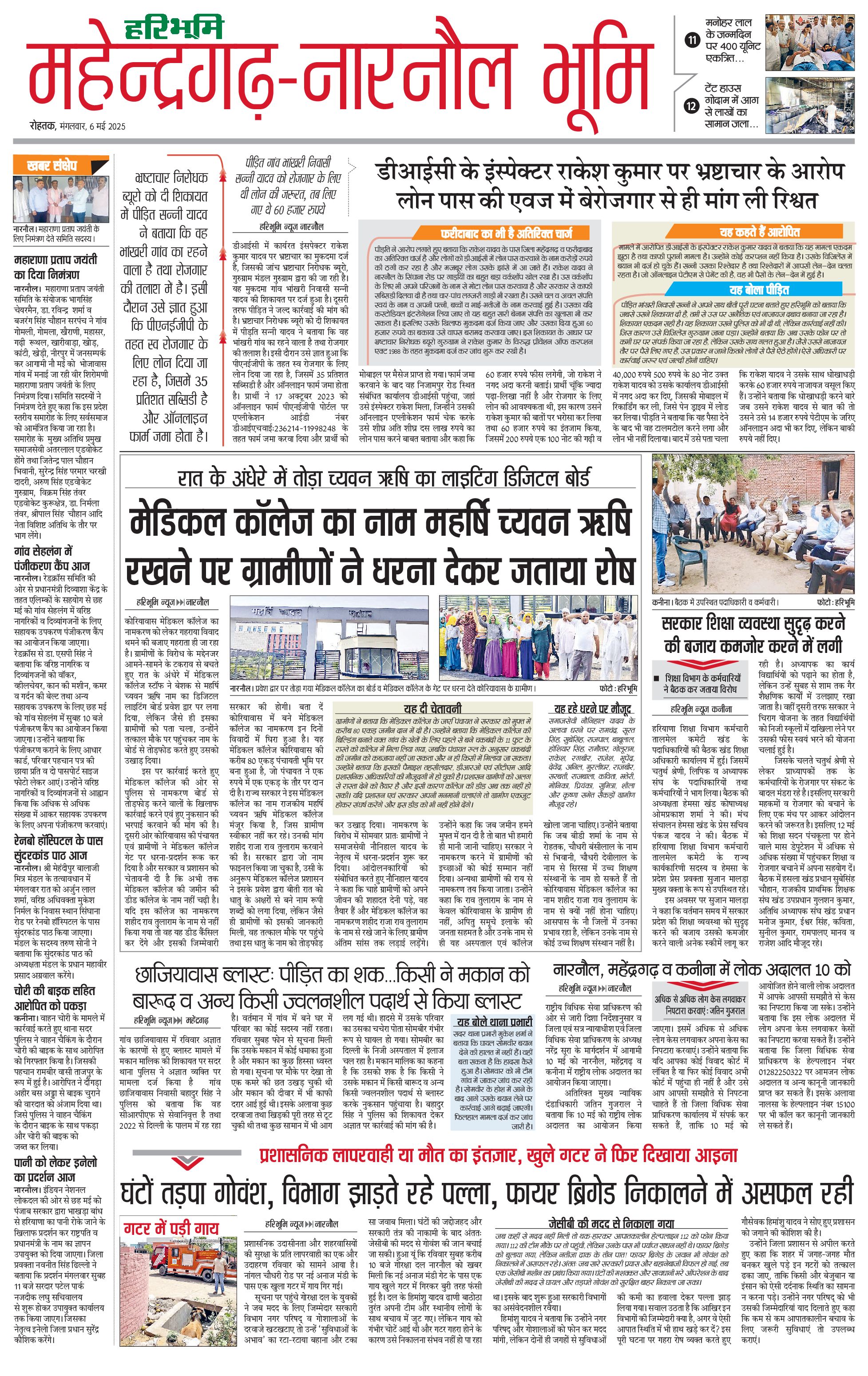 महेंद्रगढ़ - 06 May 2025 - - Page 1