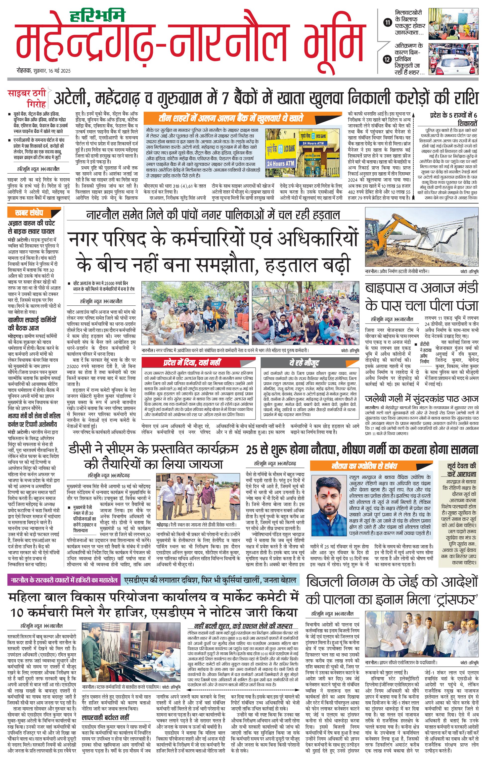 महेंद्रगढ़ - 16 May 2025 - - Page 1