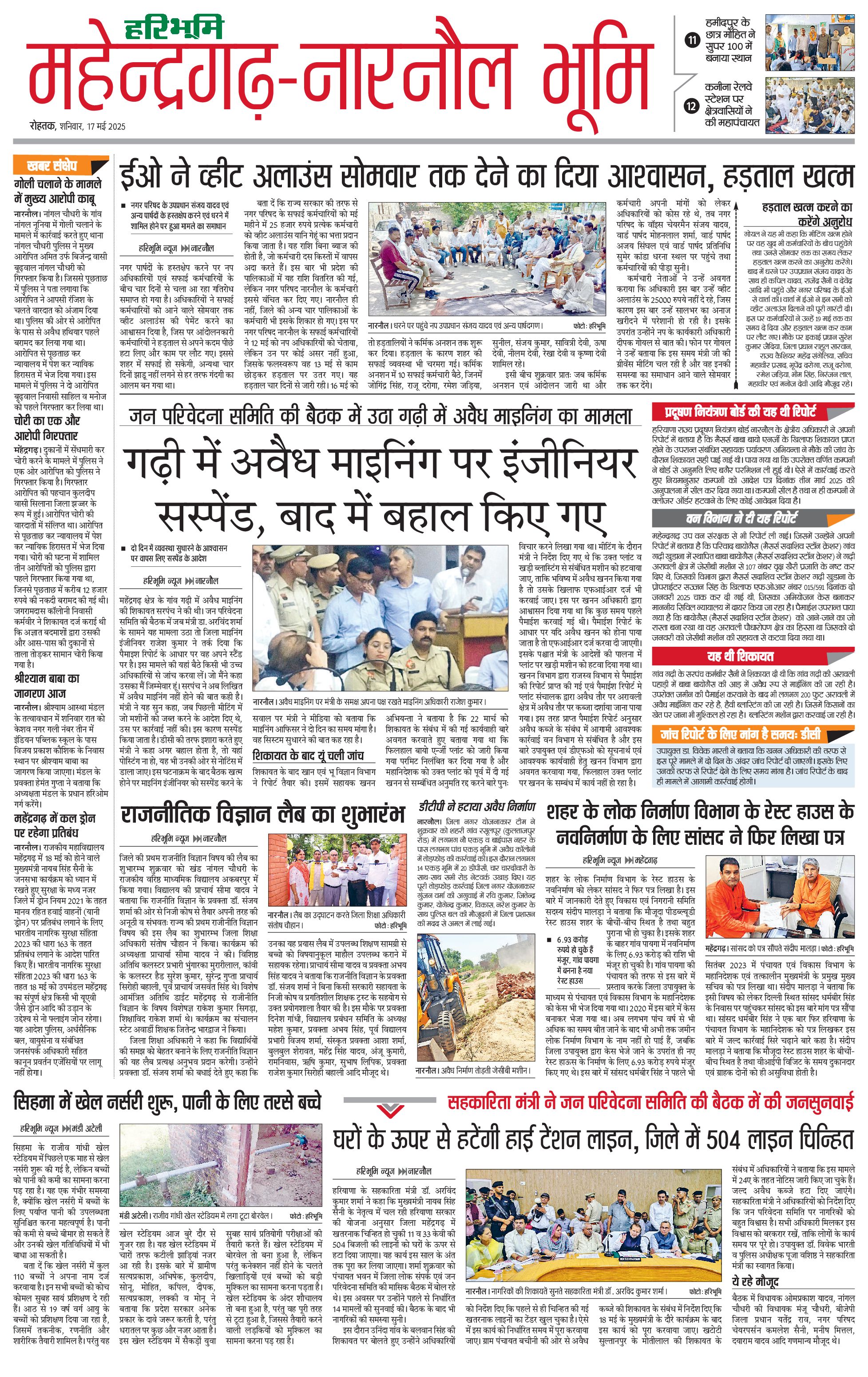 महेंद्रगढ़ - 17 May 2025 - - Page 1