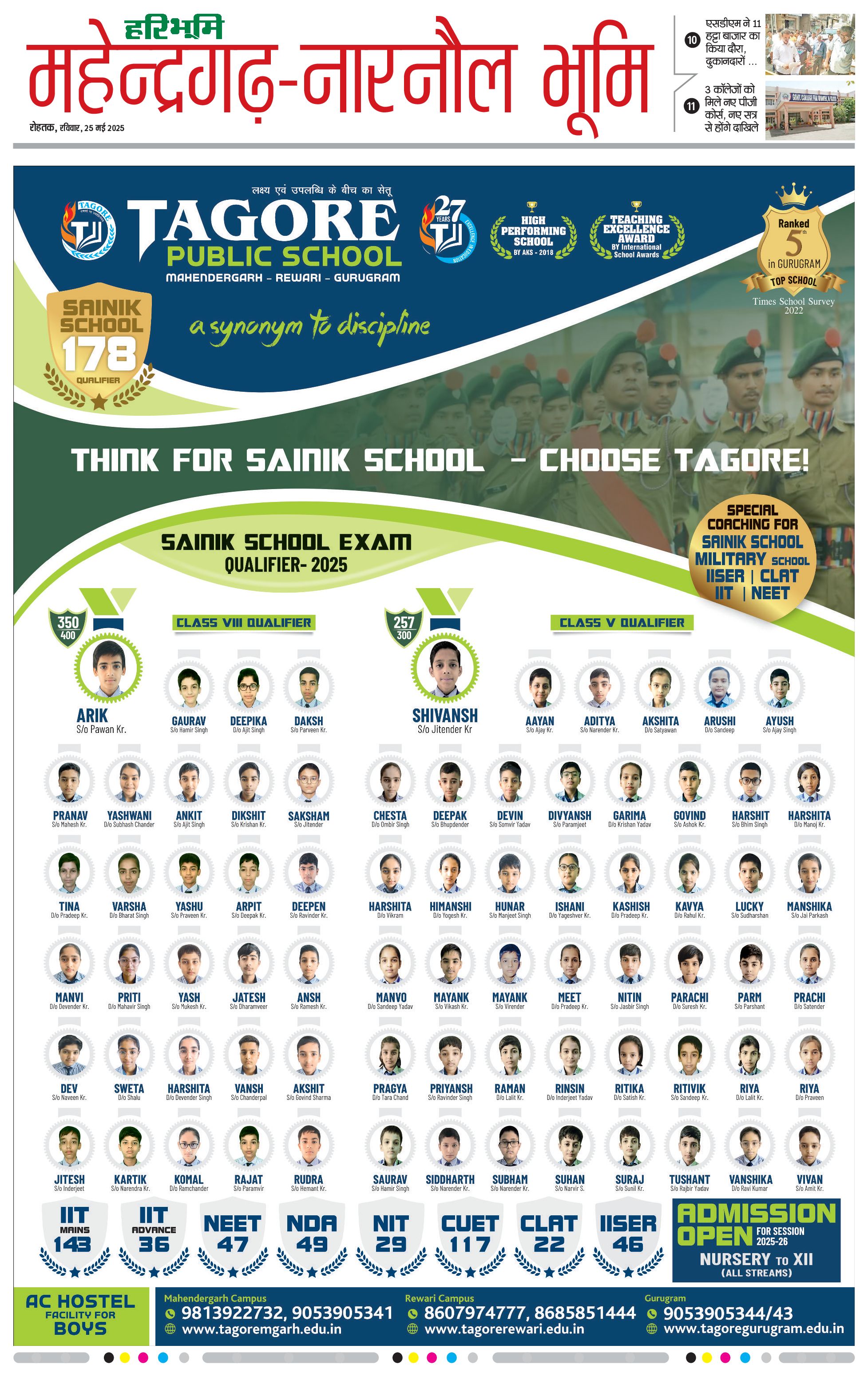 महेंद्रगढ़ - 25 May 2025 - - Page 1