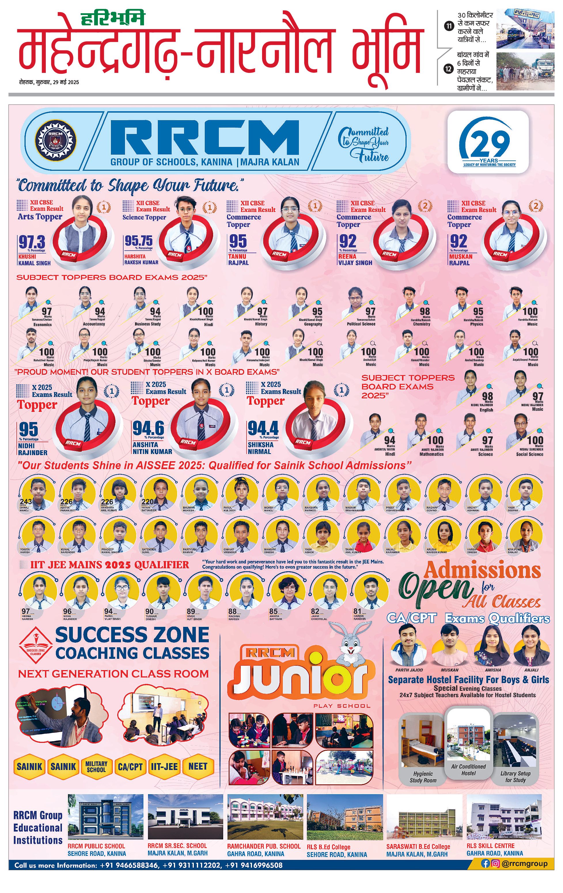 महेंद्रगढ़ - 29 May 2025 - - Page 1