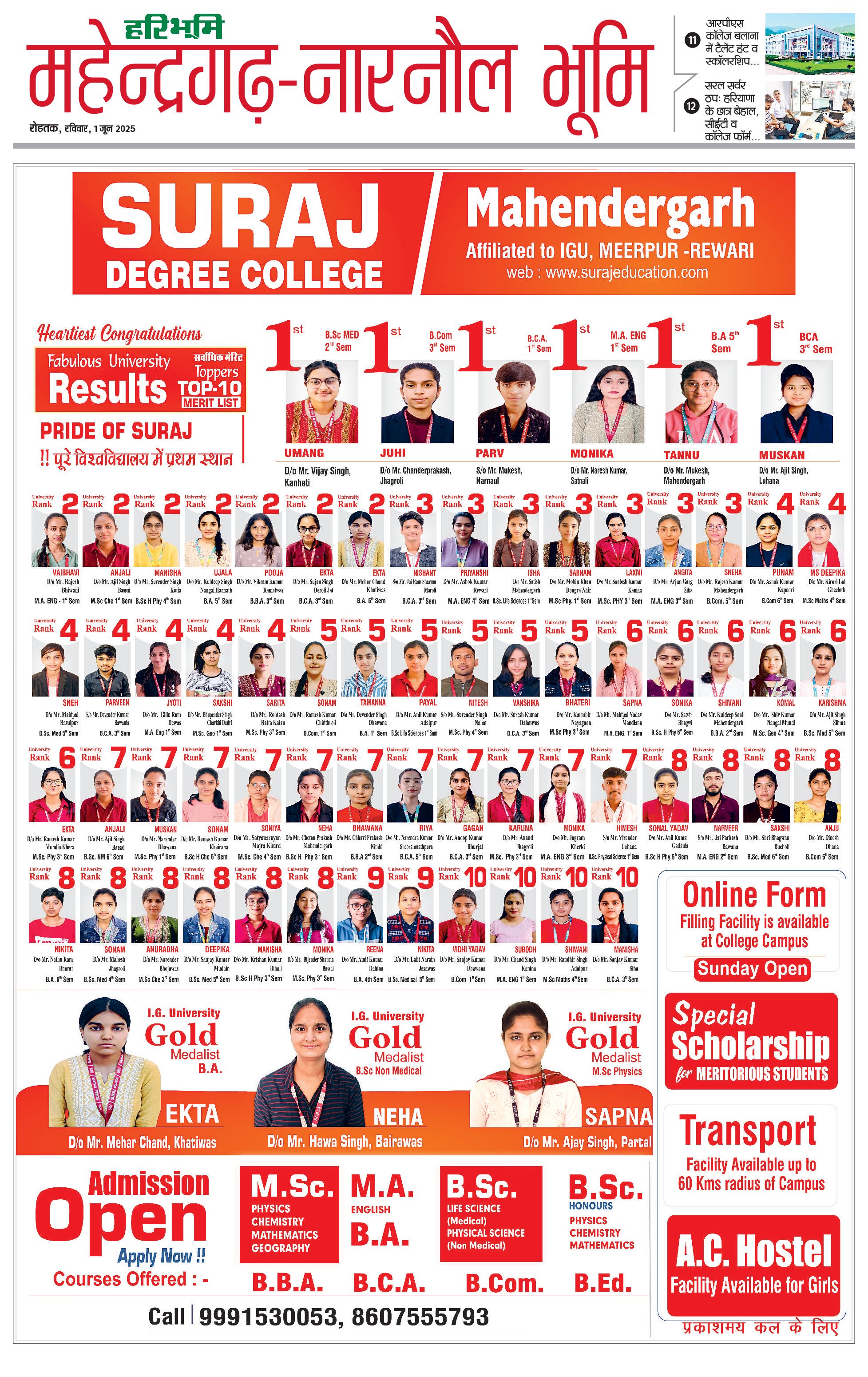 महेंद्रगढ़ - 01 Jun 2025 - - Page 1