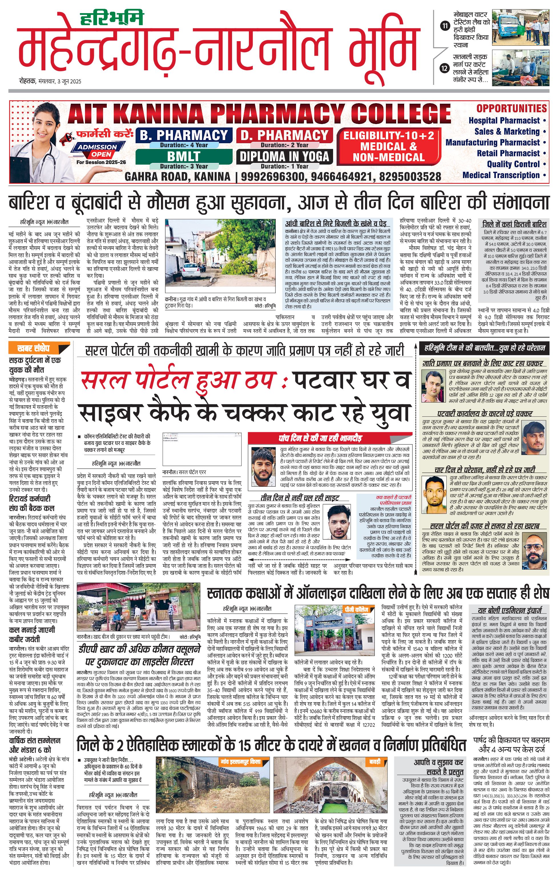 महेंद्रगढ़ - 03 Jun 2025 - - Page 1