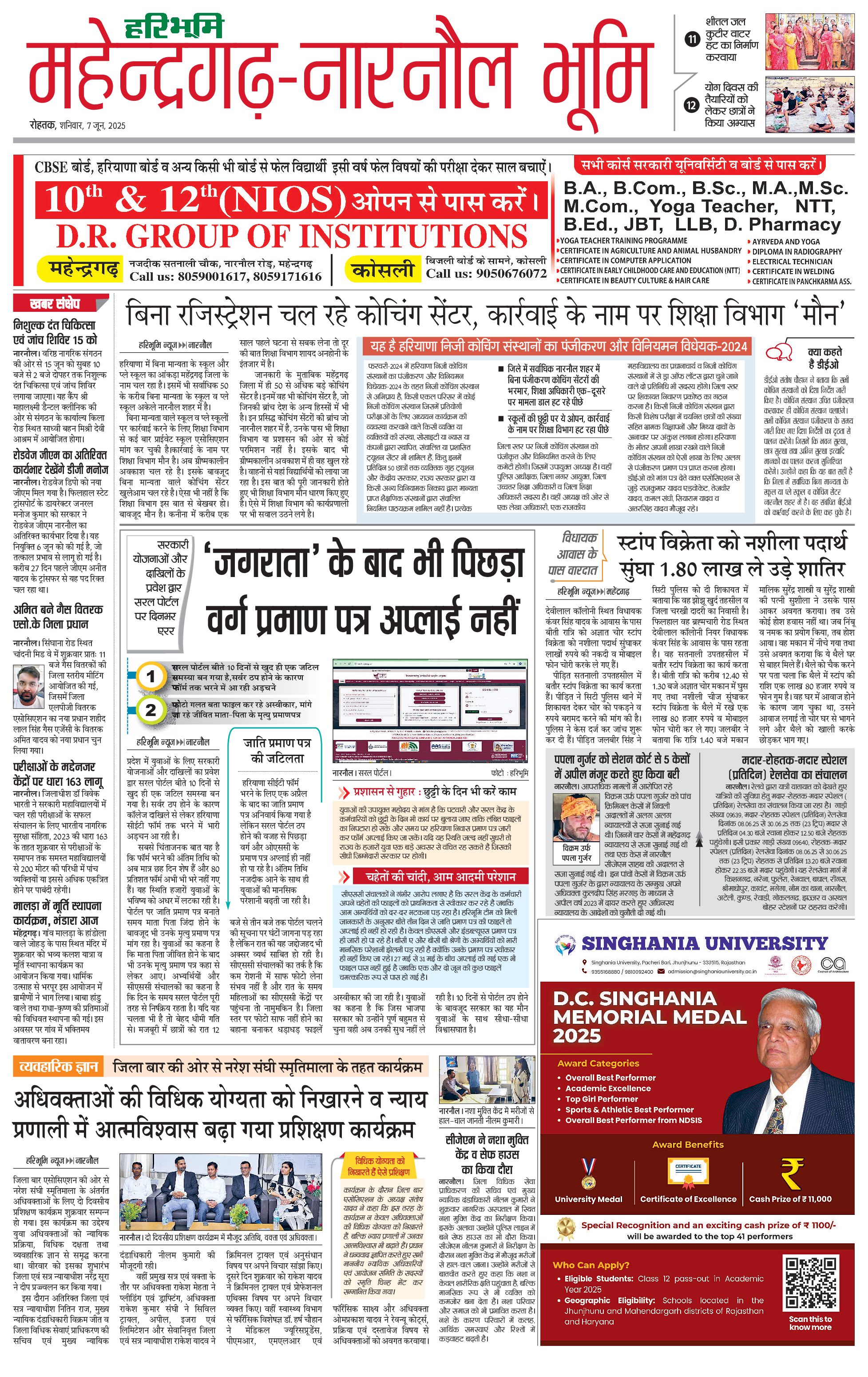 महेंद्रगढ़ - 07 Jun 2025 - - Page 1