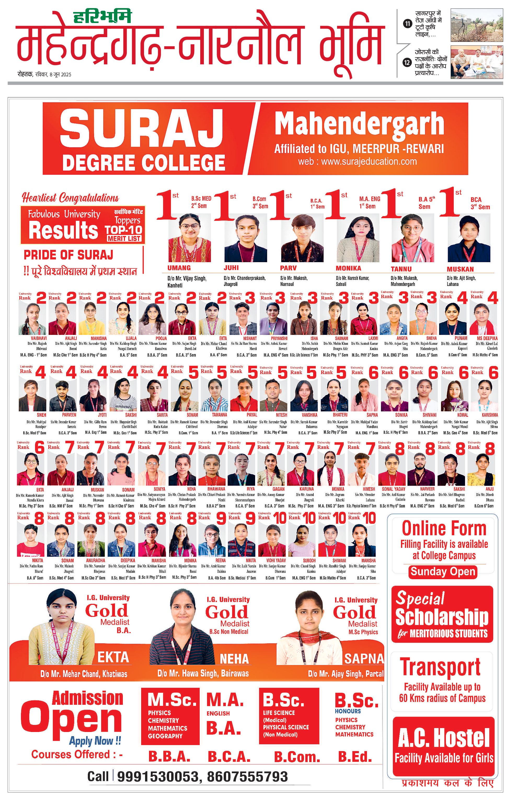 महेंद्रगढ़ - 08 Jun 2025 - - Page 1