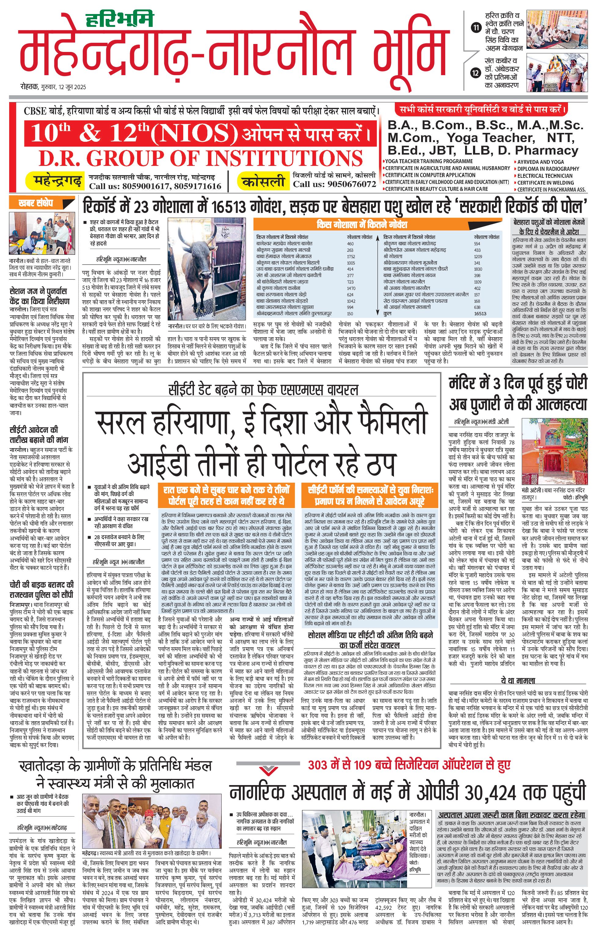 महेंद्रगढ़ - 12 Jun 2025 - - Page 1