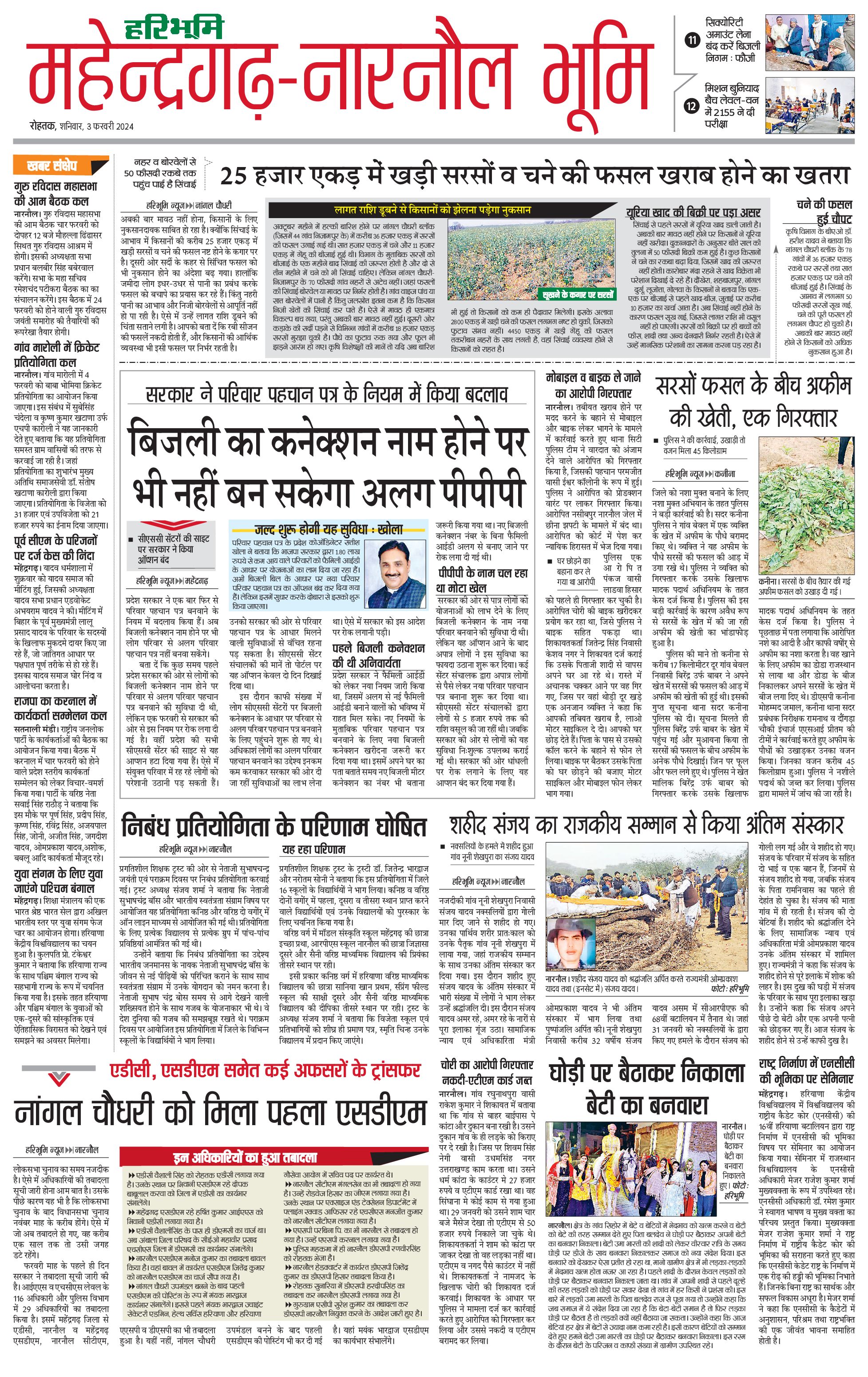 महेंद्रगढ़ - 03 Feb 2024 - - Page 1