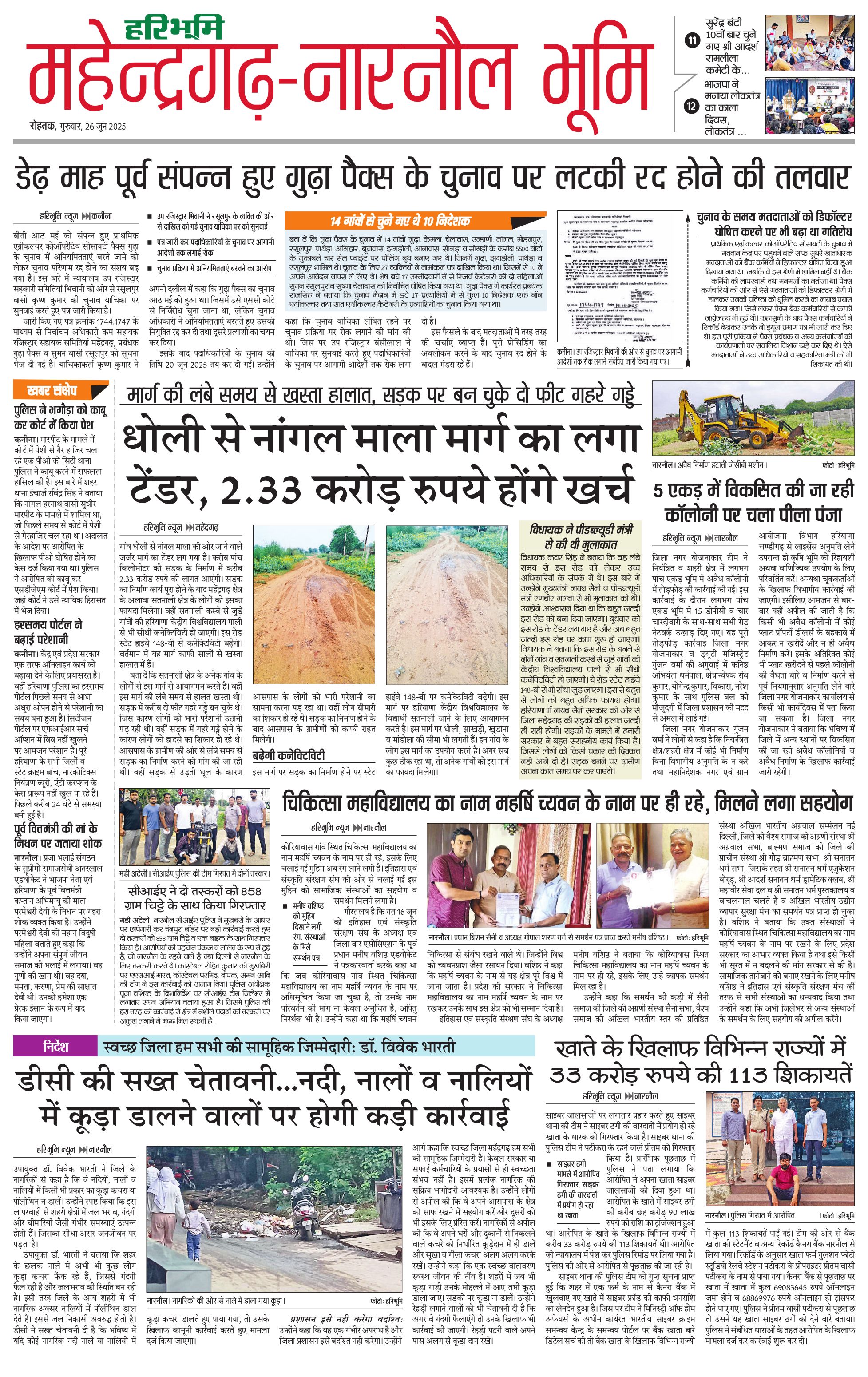 महेंद्रगढ़ - 26 Jun 2025 - - Page 1