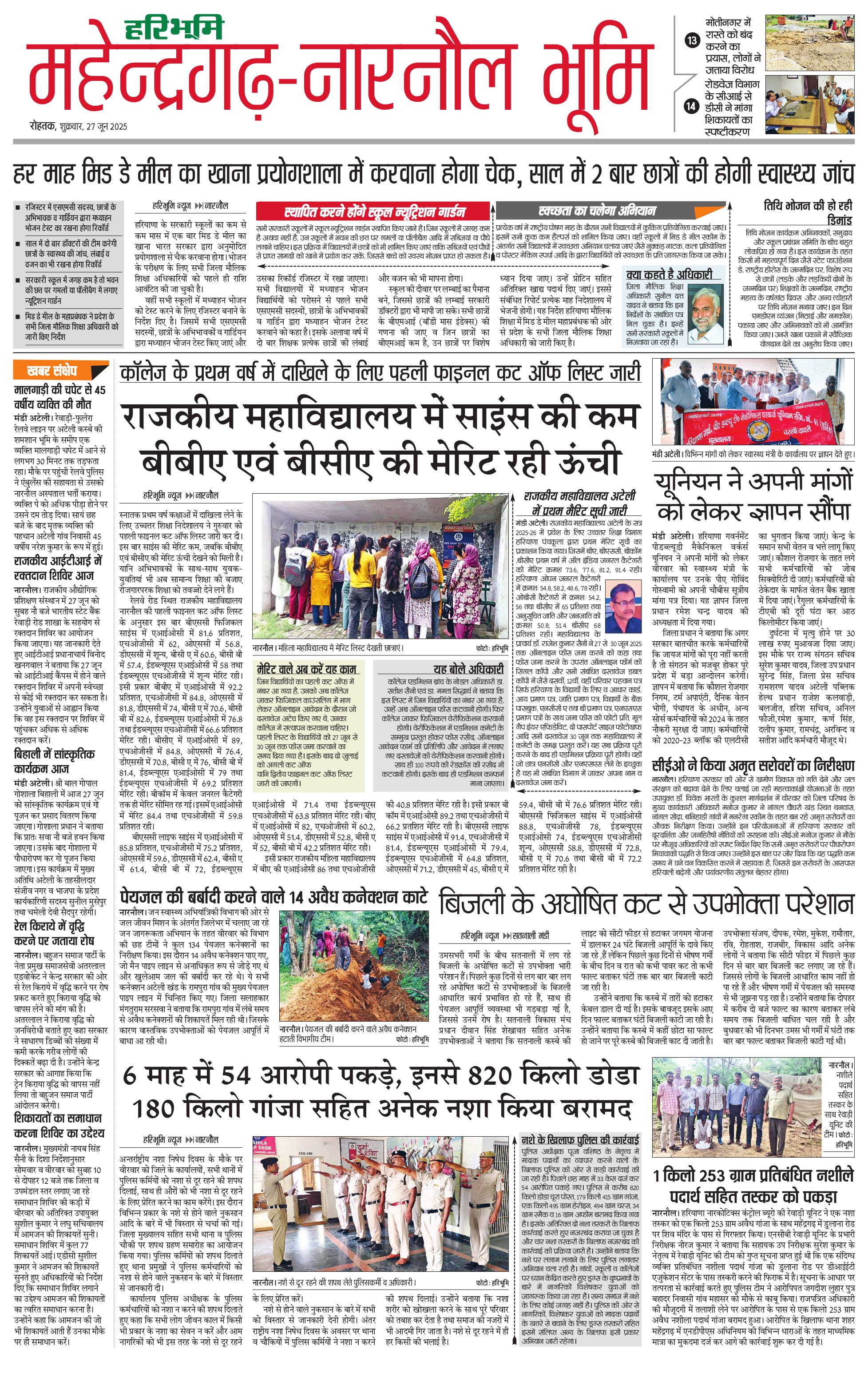 महेंद्रगढ़ - 27 Jun 2025 - - Page 1