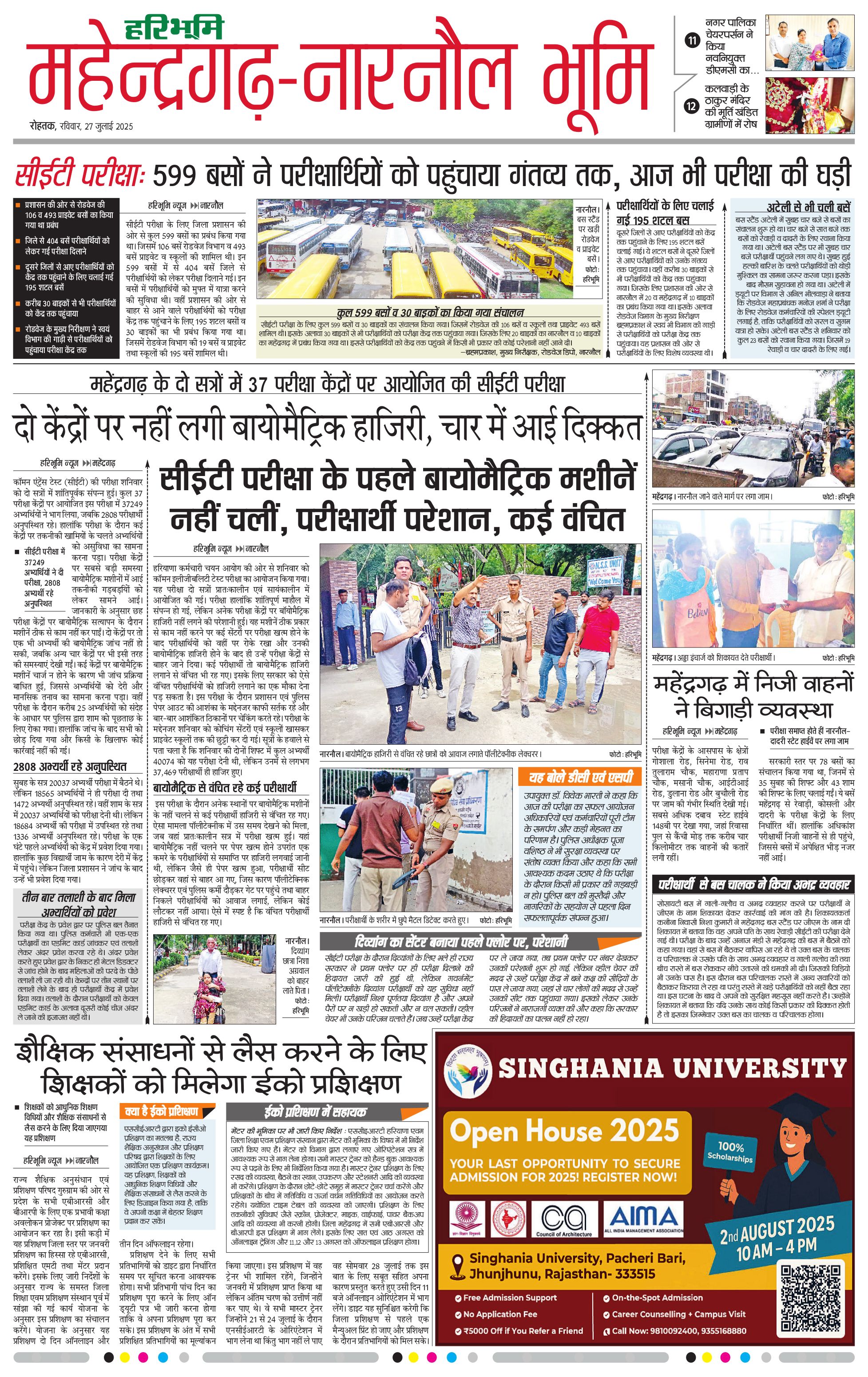 महेंद्रगढ़ - 27 Jul 2025 - - Page 1