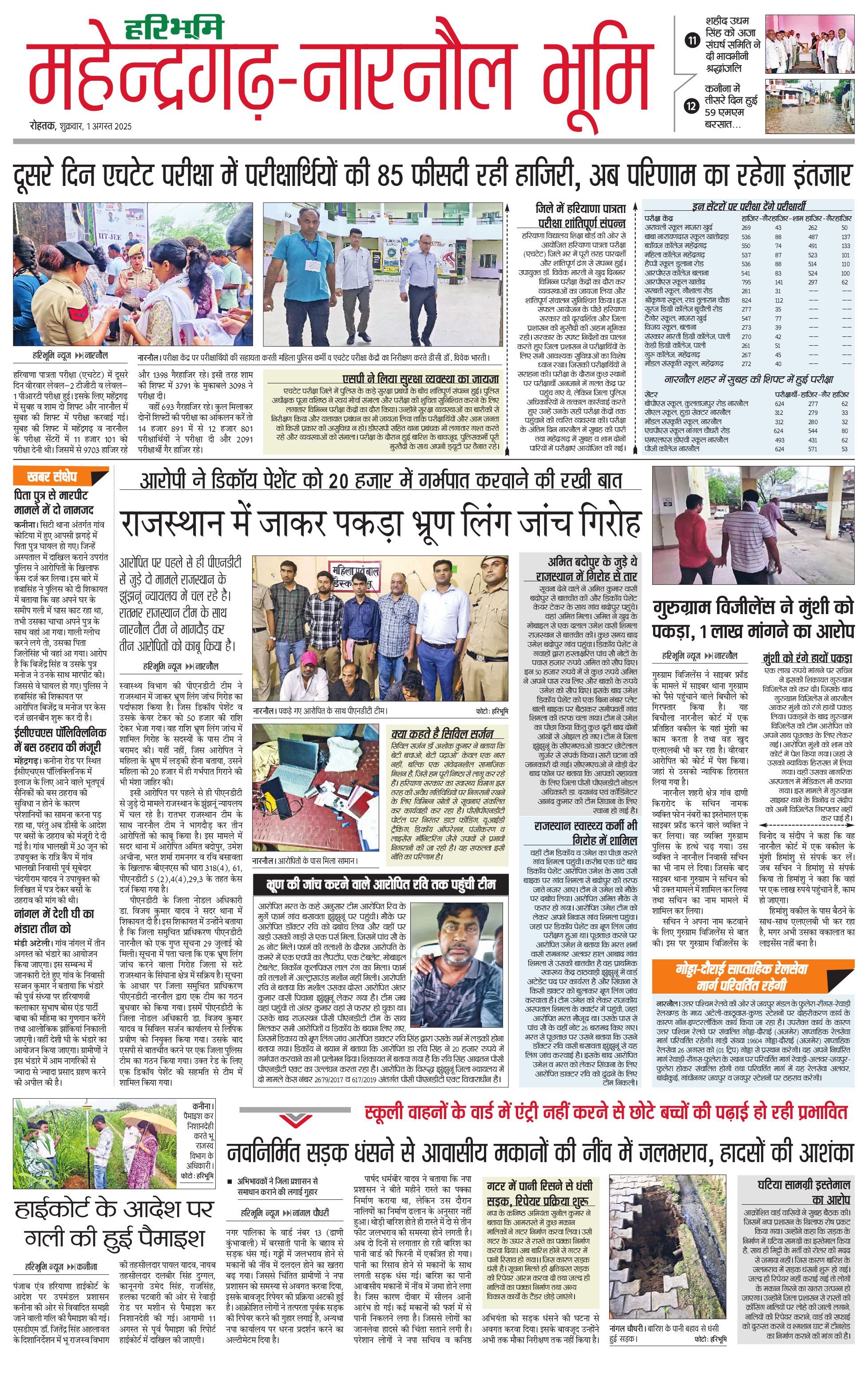 महेंद्रगढ़ - 01 Aug 2025 - - Page 1