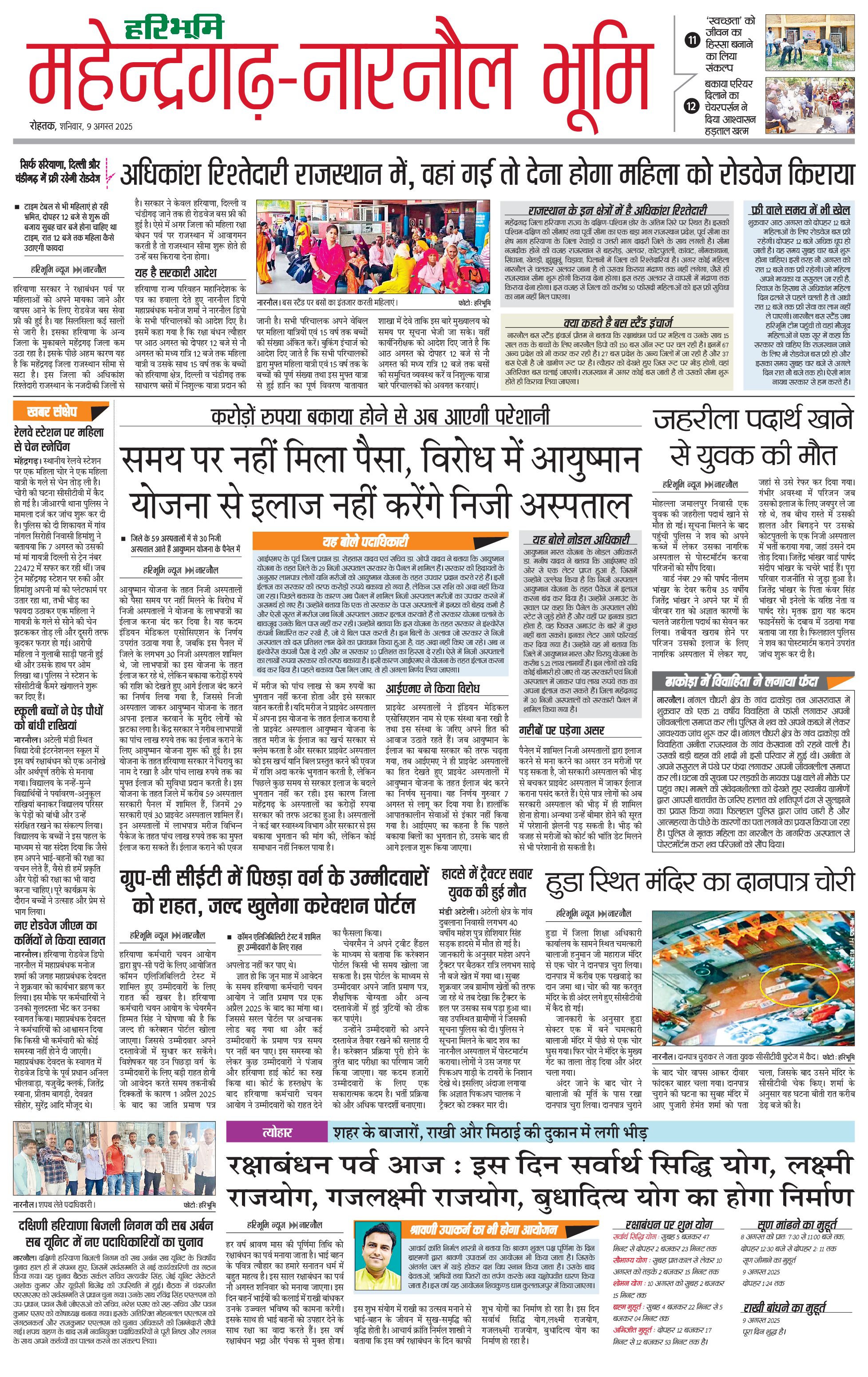 महेंद्रगढ़ - 09 Aug 2025 - - Page 1
