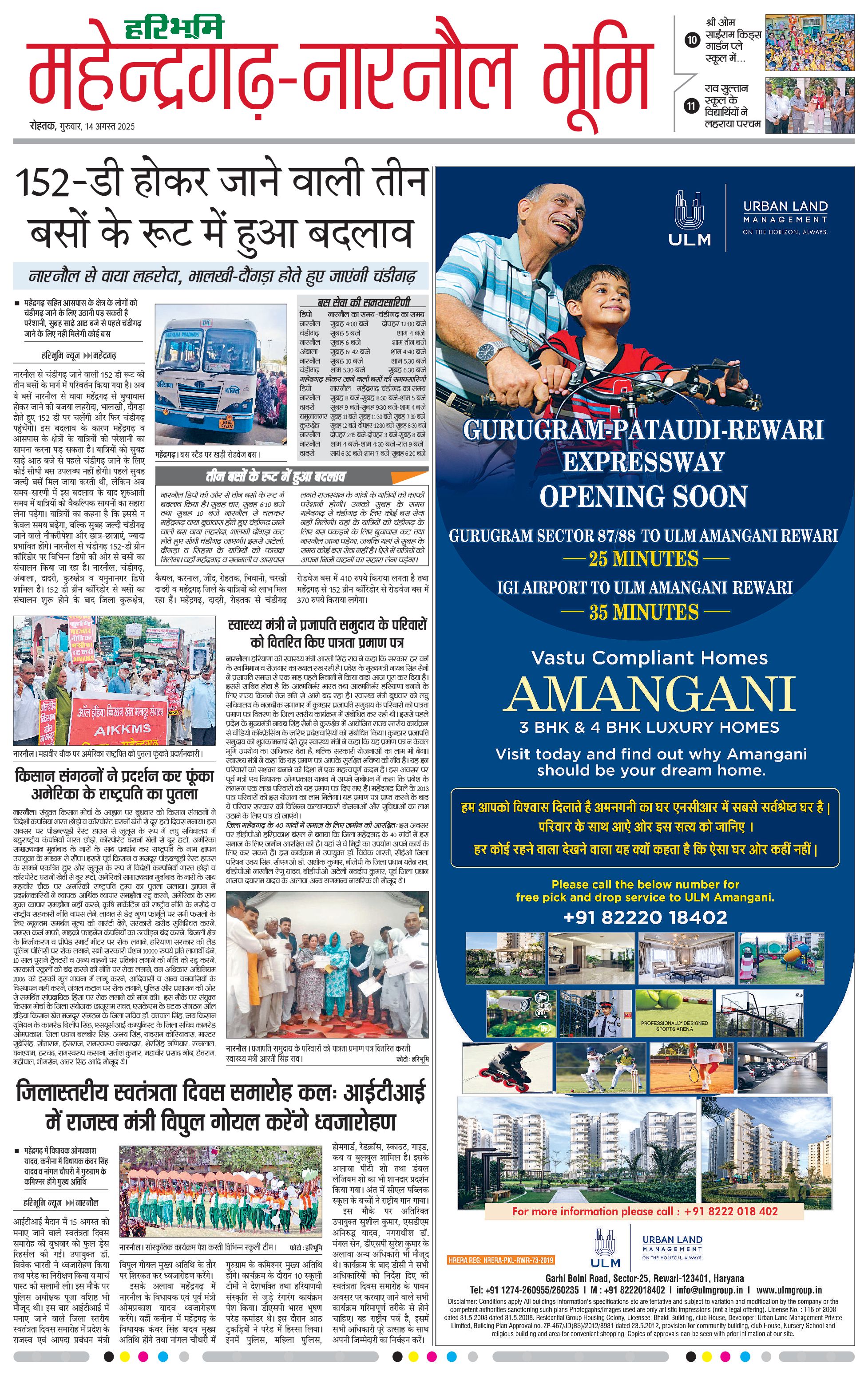 महेंद्रगढ़ - 14 Aug 2025 - - Page 1
