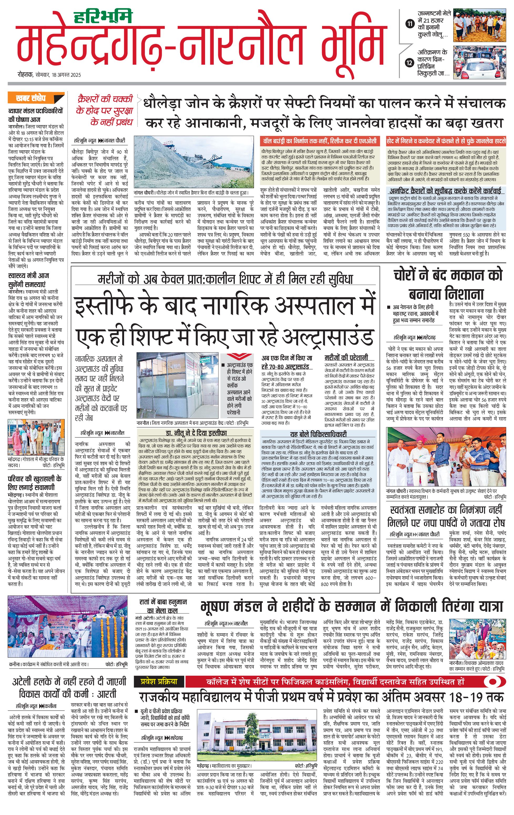 महेंद्रगढ़ - 18 Aug 2025 - - Page 1