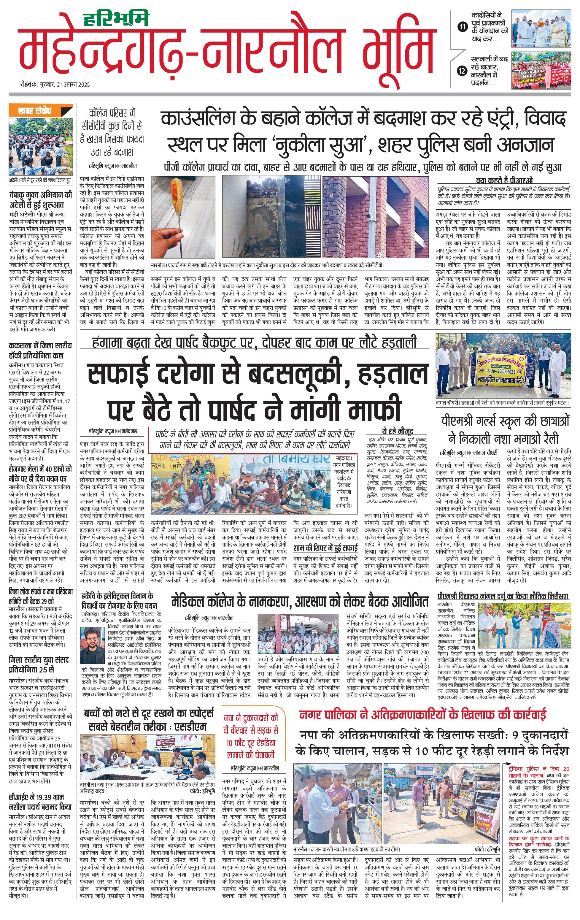 महेंद्रगढ़ - 21 Aug 2025 - - Page 1