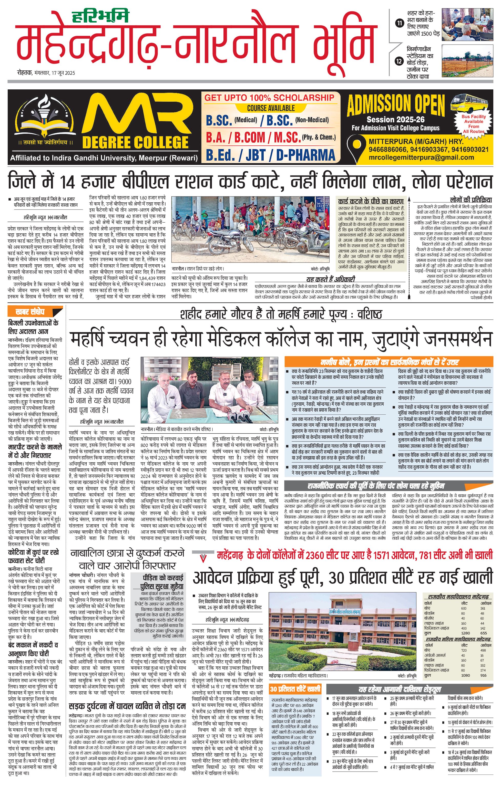 महेंद्रगढ़ - 17 Jun 2025 - - Page 1