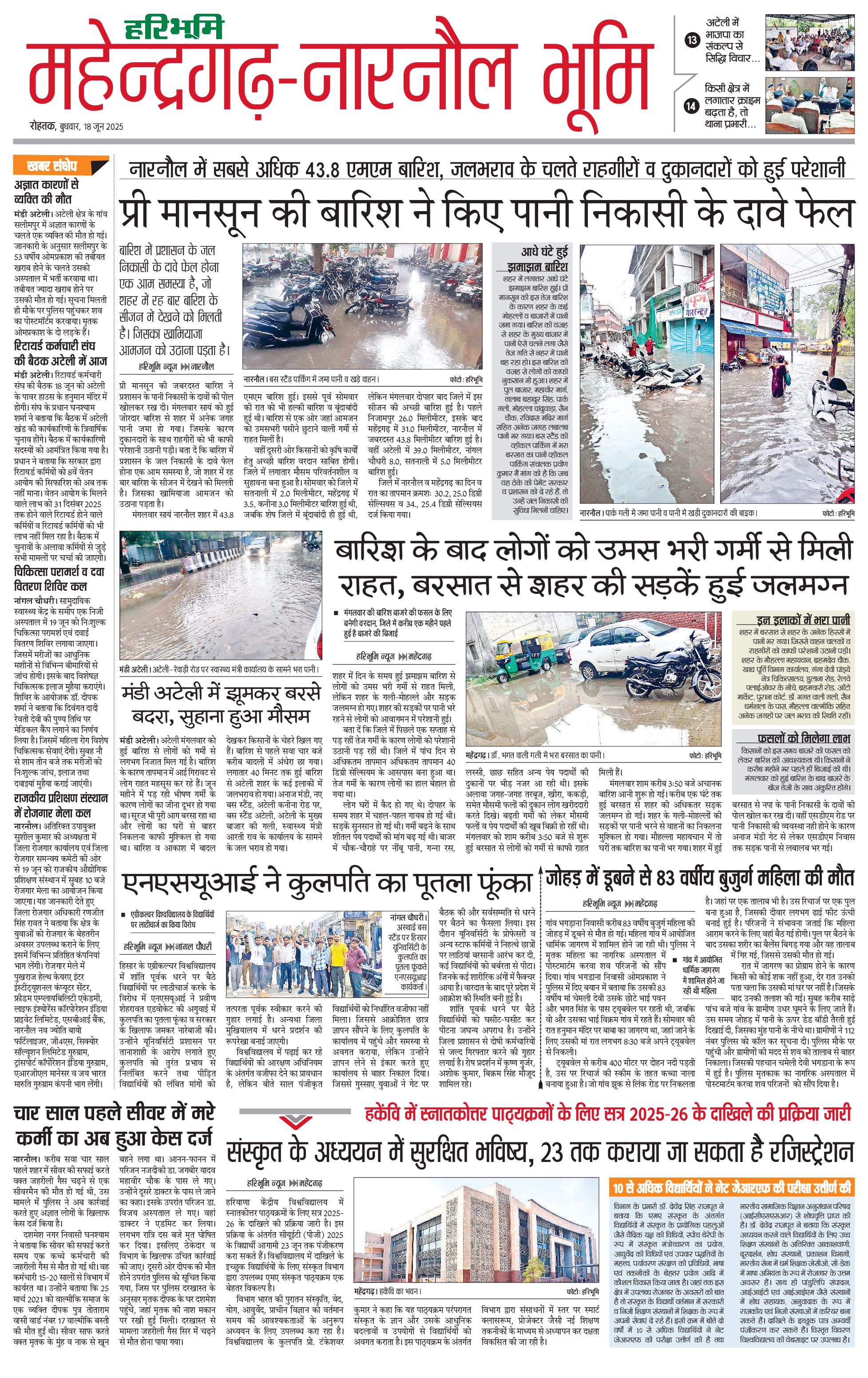 महेंद्रगढ़ - 18 Jun 2025 - - Page 1