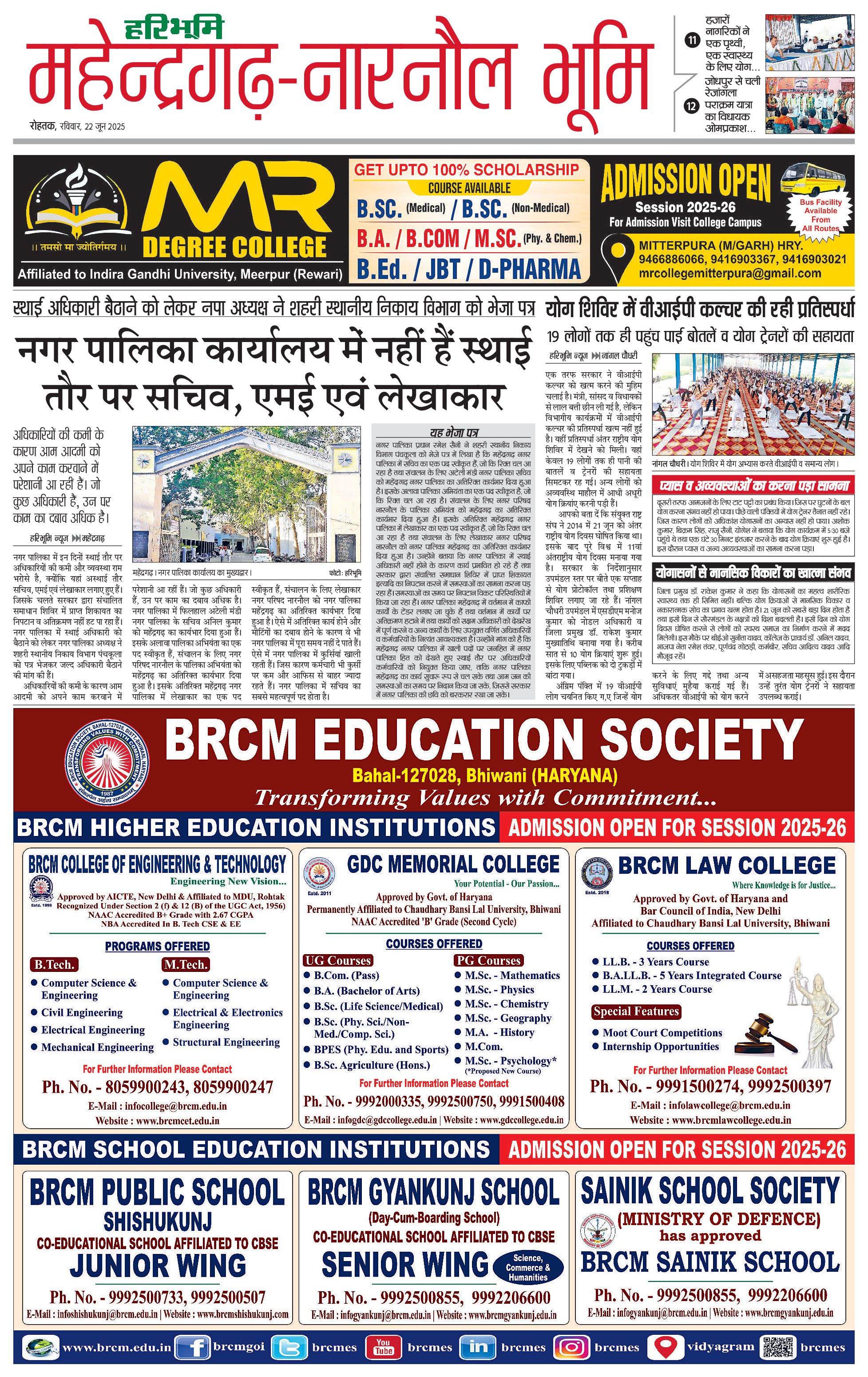 महेंद्रगढ़ - 22 Jun 2025 - - Page 1