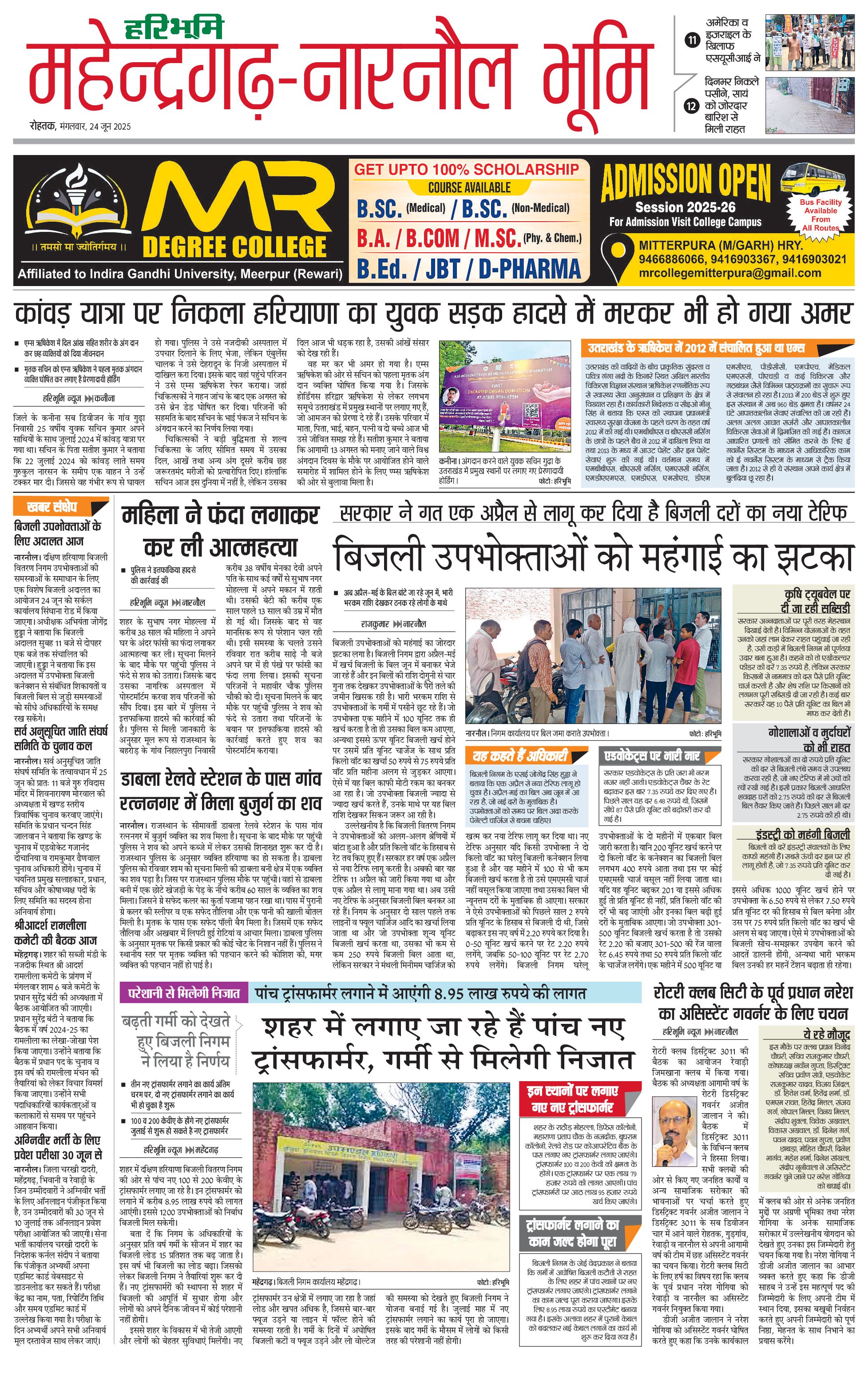 महेंद्रगढ़ - 24 Jun 2025 - - Page 1