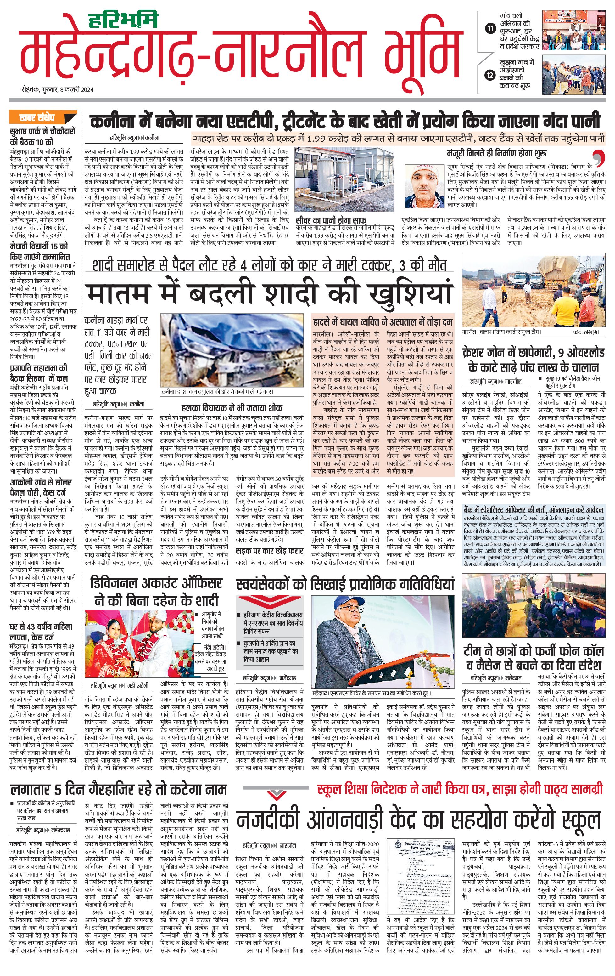 महेंद्रगढ़ - 08 Feb 2024 - - Page 1