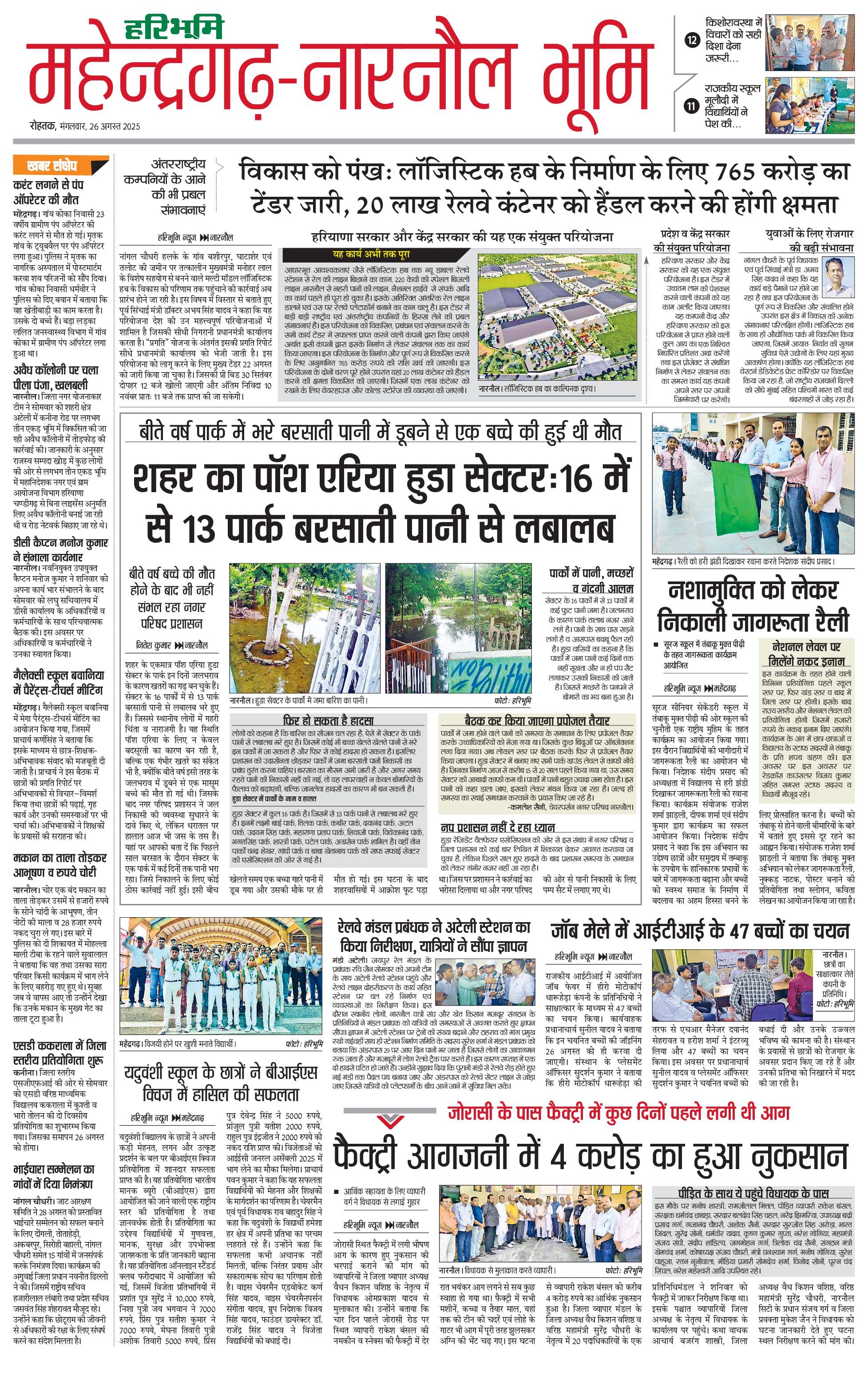 महेंद्रगढ़ - 26 Aug 2025 - - Page 1