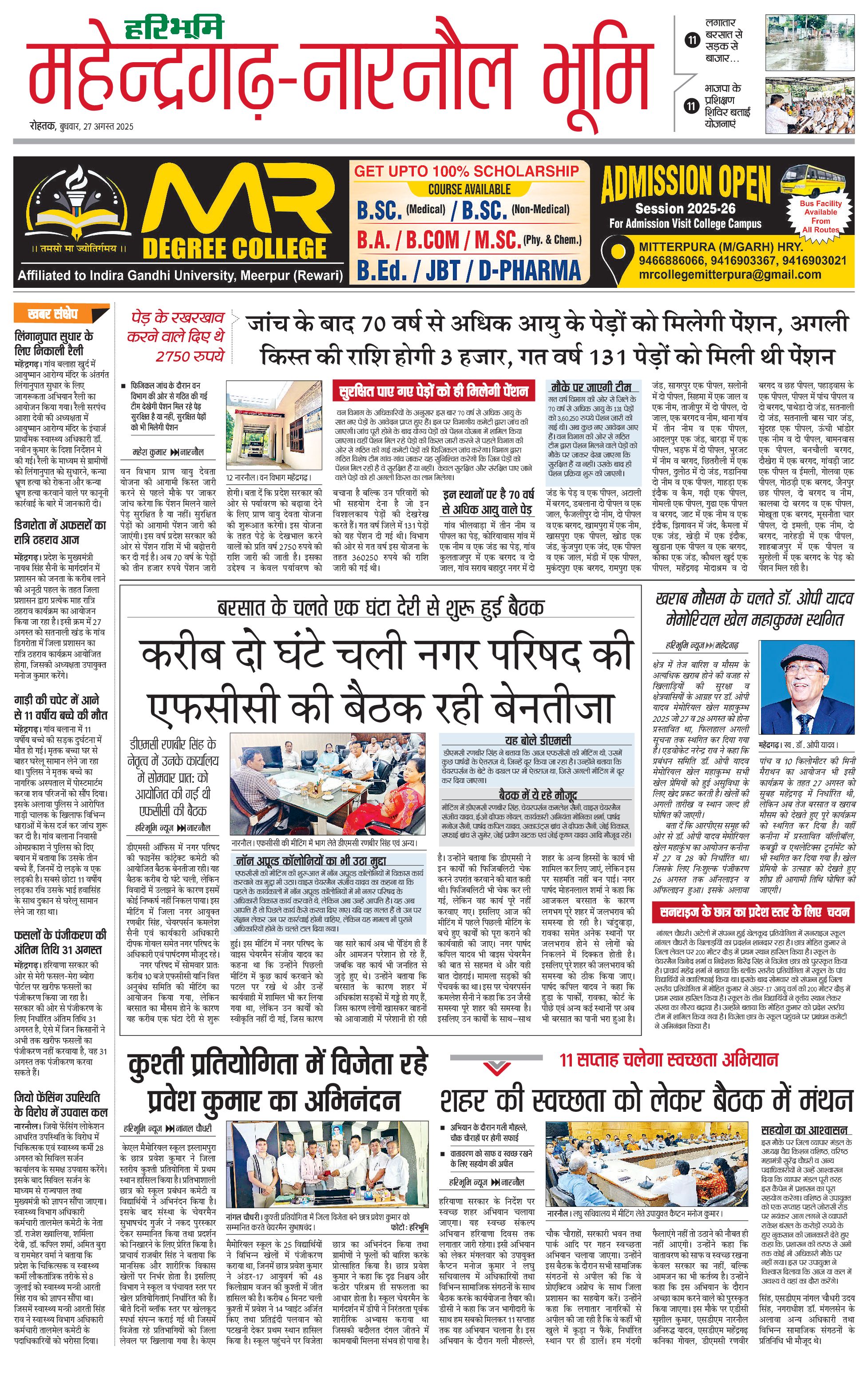 महेंद्रगढ़ - 27 Aug 2025 - - Page 1