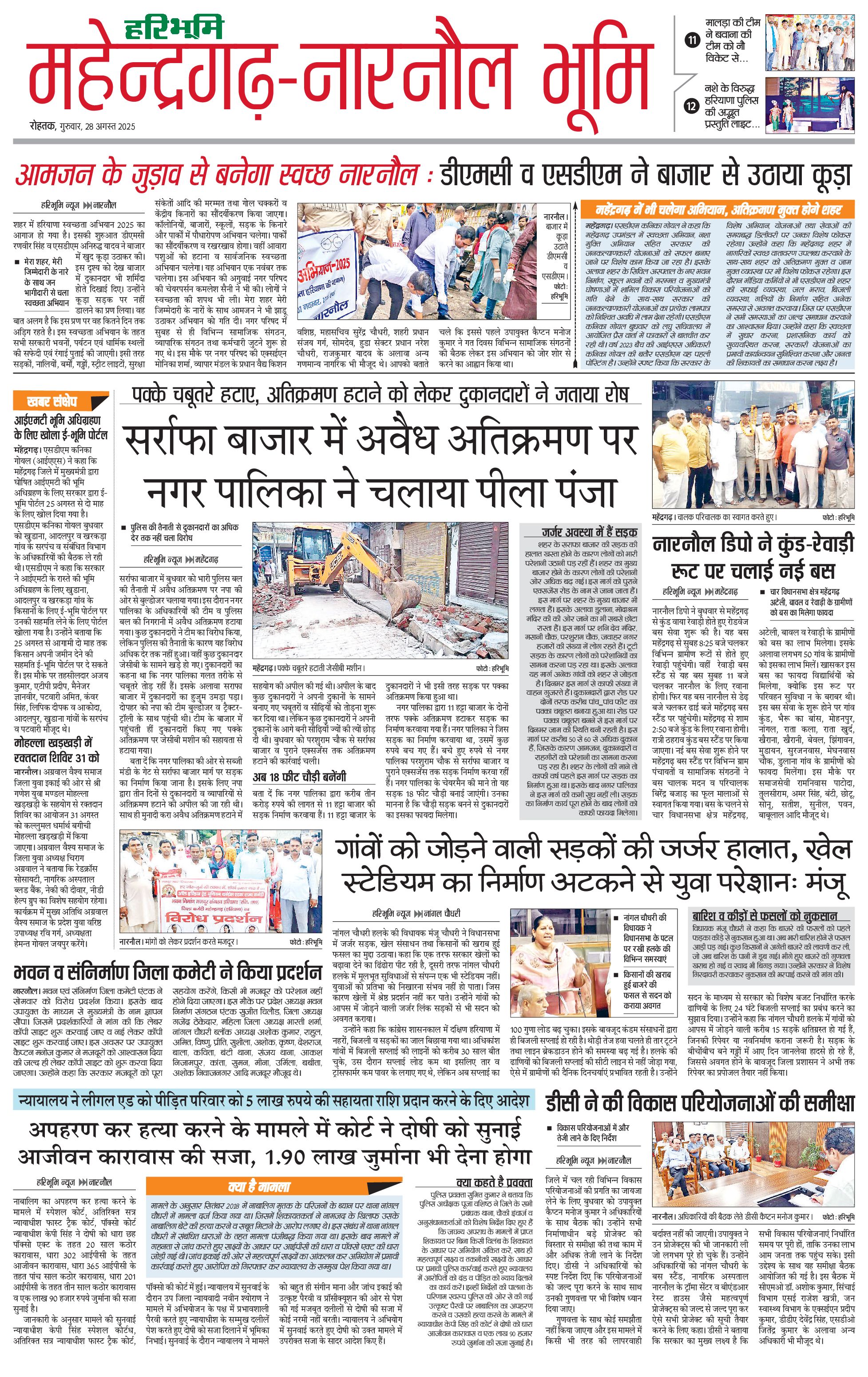 महेंद्रगढ़ - 28 Aug 2025 - - Page 1
