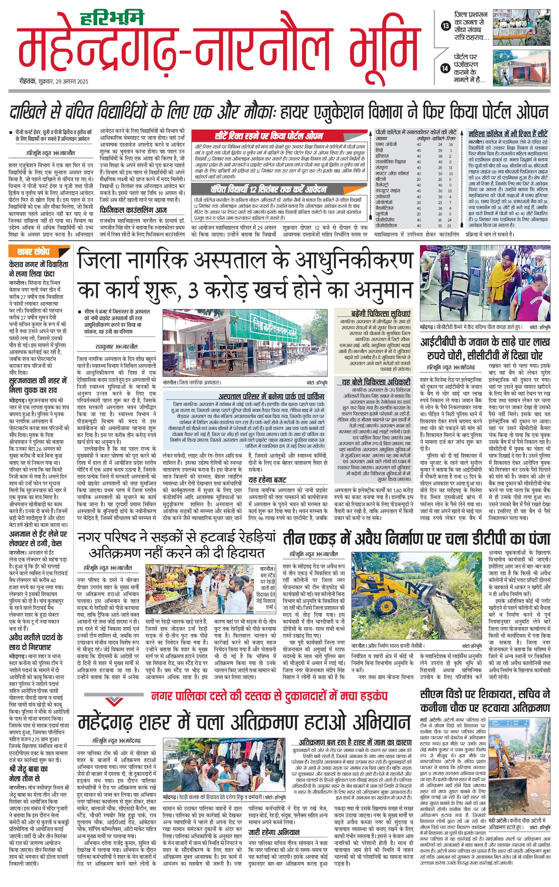 महेंद्रगढ़ - 29 Aug 2025 - - Page 1