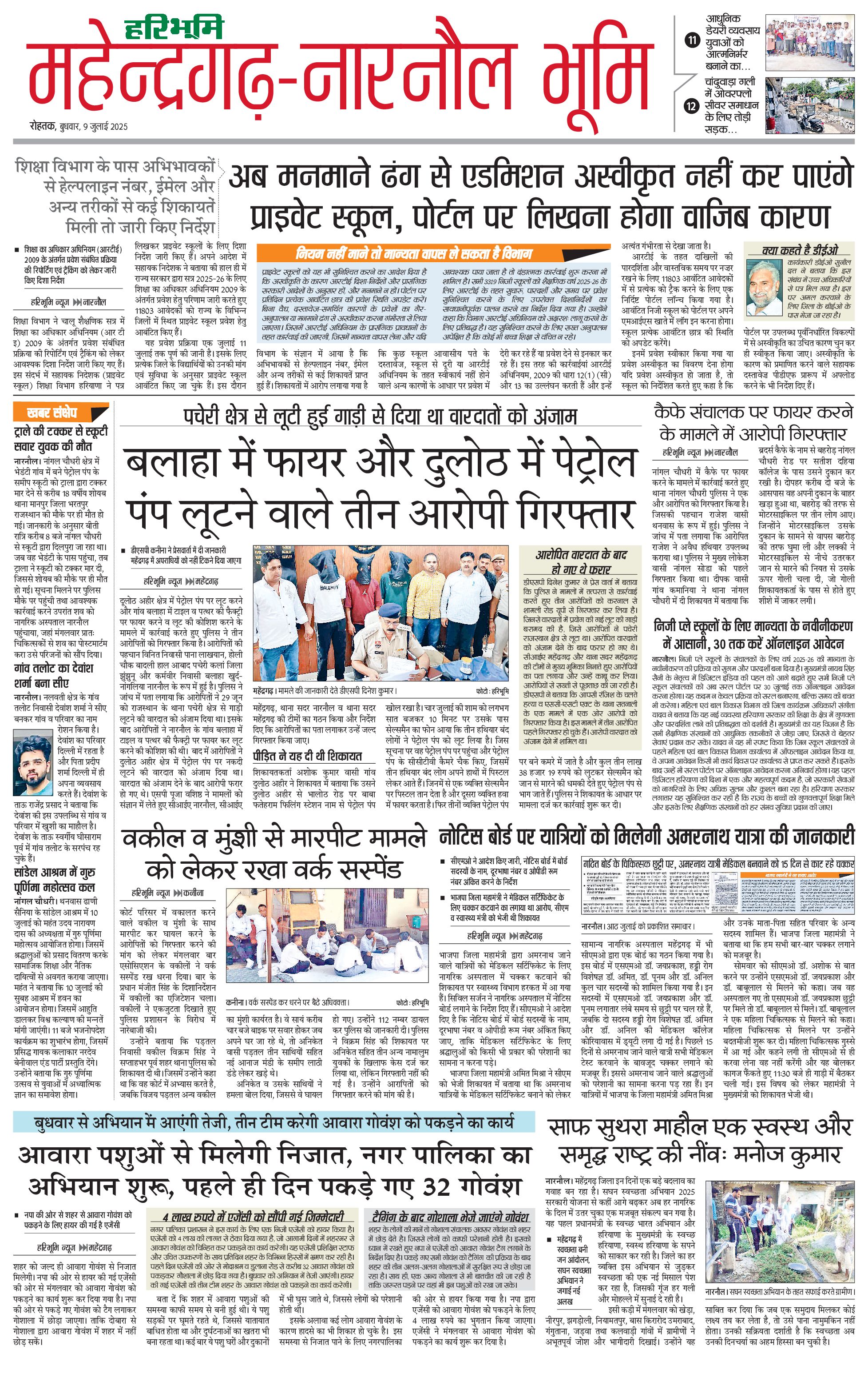 महेंद्रगढ़ - 09 Jul 2025 - - Page 1