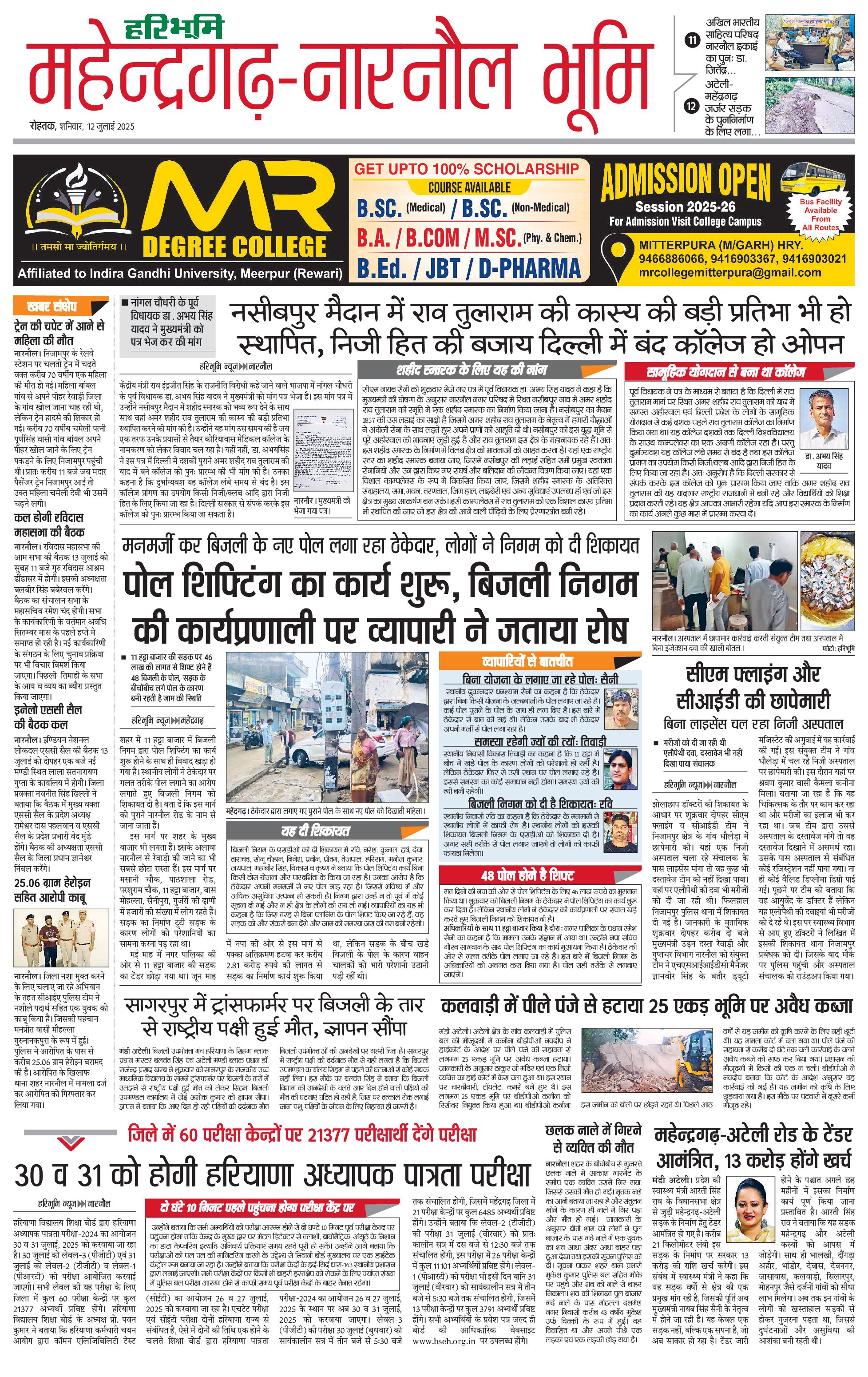 महेंद्रगढ़ - 12 Jul 2025 - - Page 1