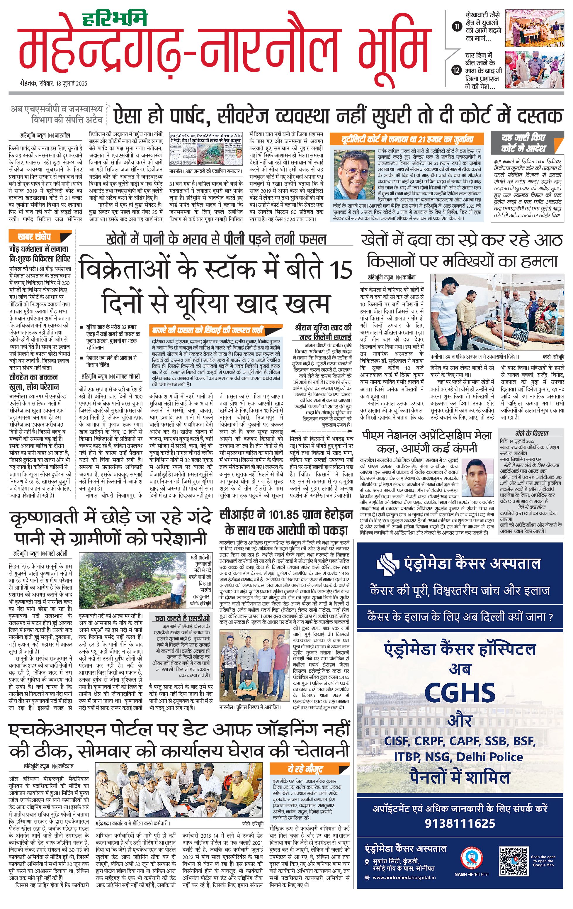महेंद्रगढ़ - 13 Jul 2025 - - Page 1