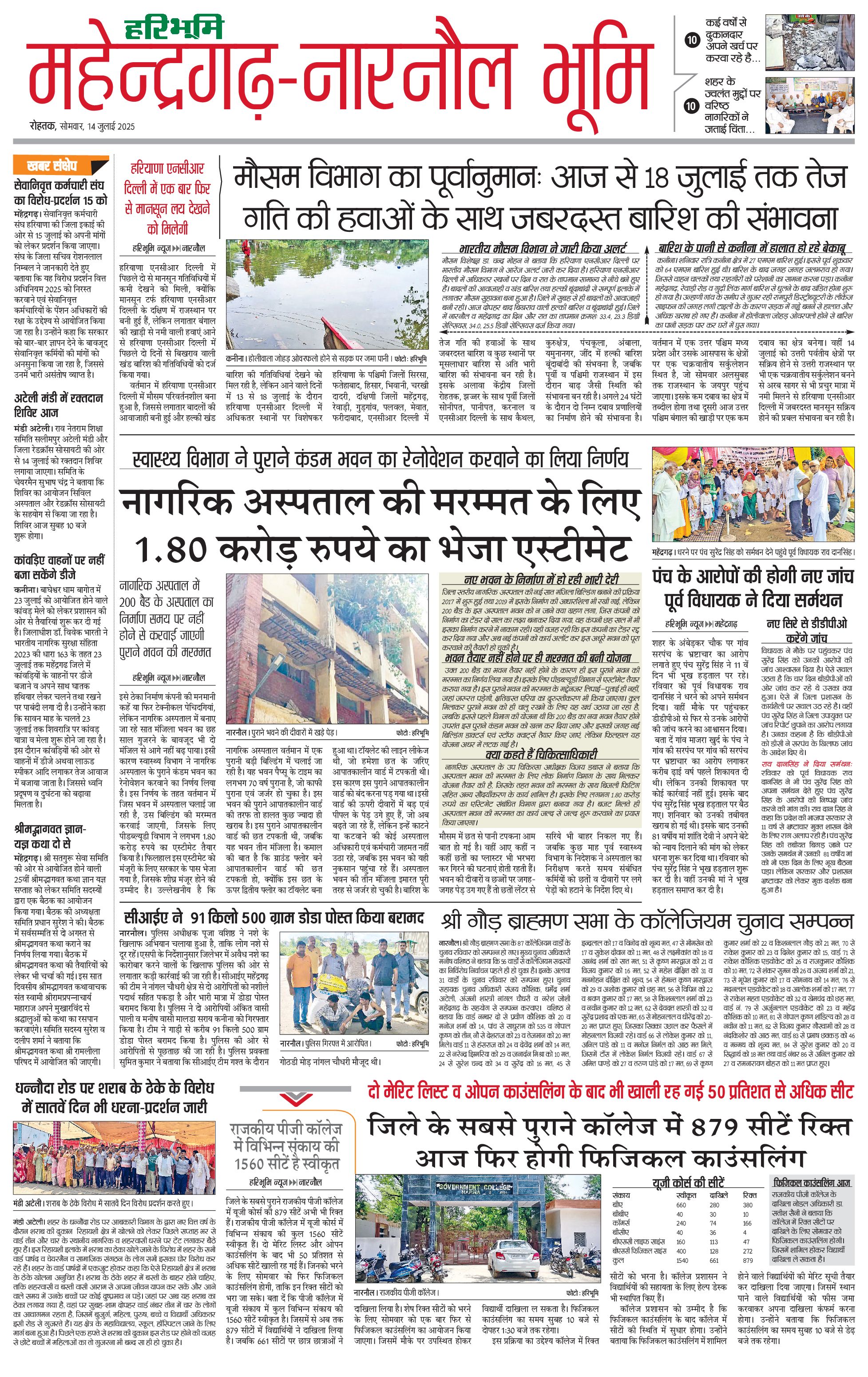 महेंद्रगढ़ - 14 Jul 2025 - - Page 1