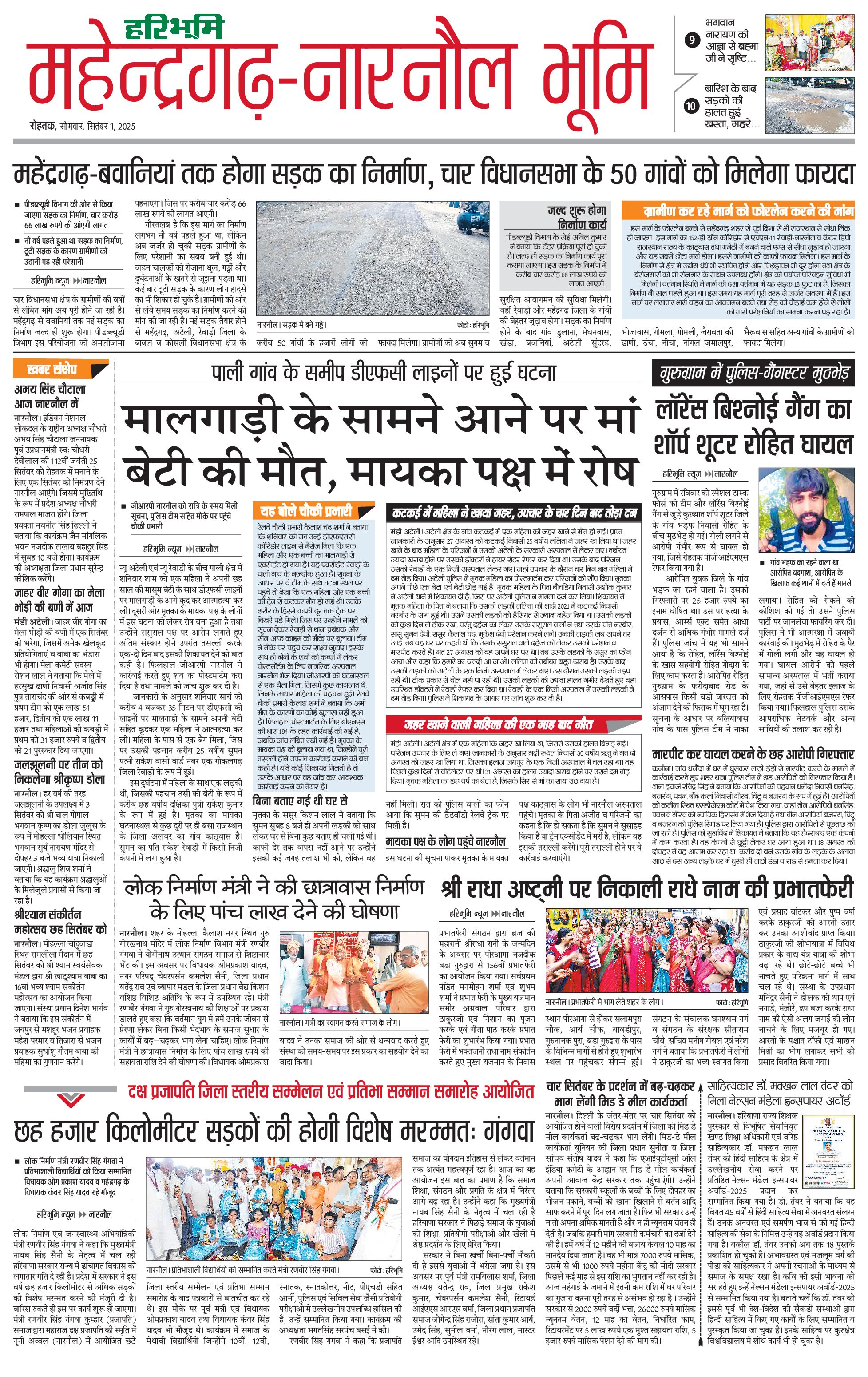 महेंद्रगढ़ - 01 Sep 2025 - - Page 1