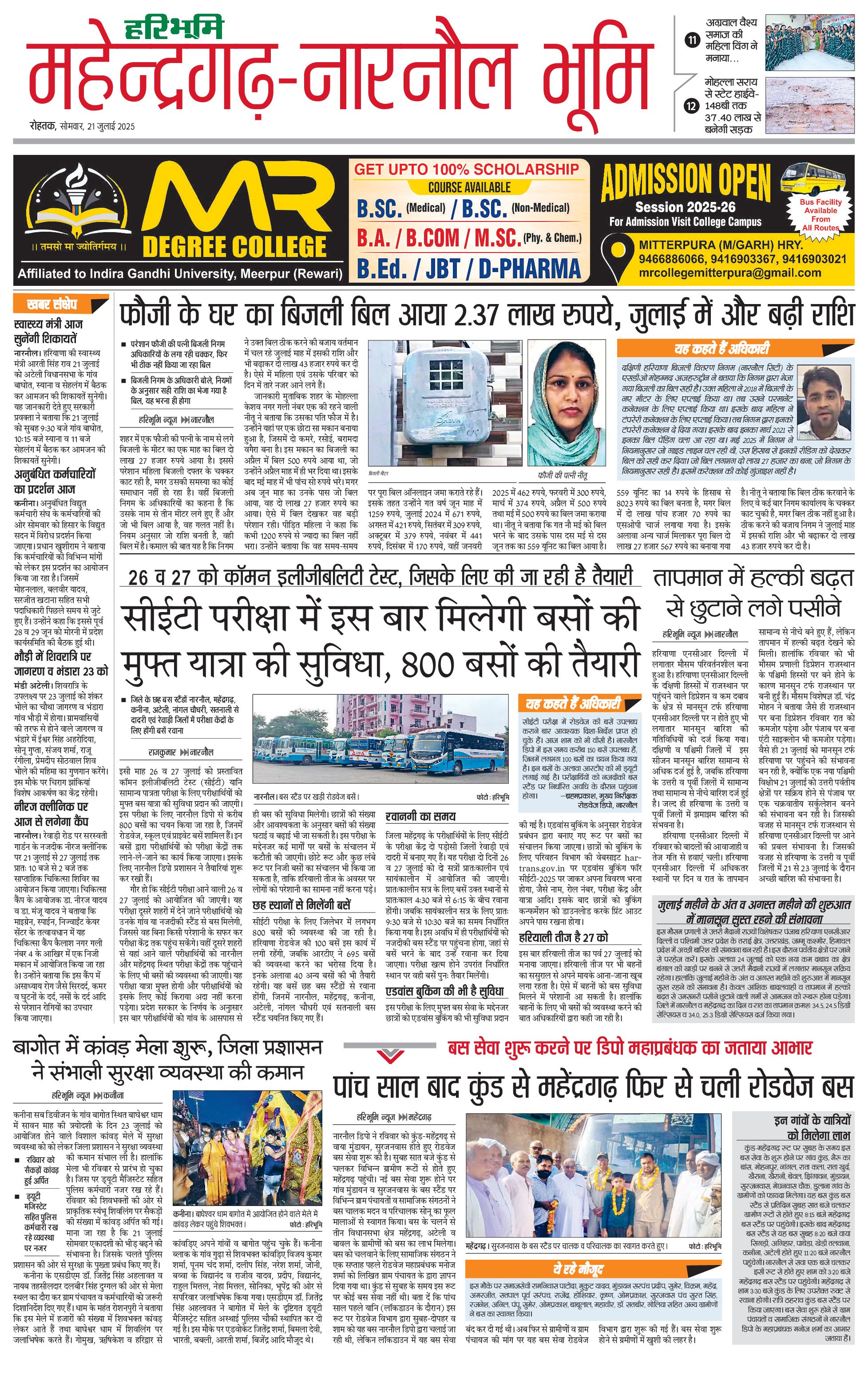 महेंद्रगढ़ - 21 Jul 2025 - - Page 1