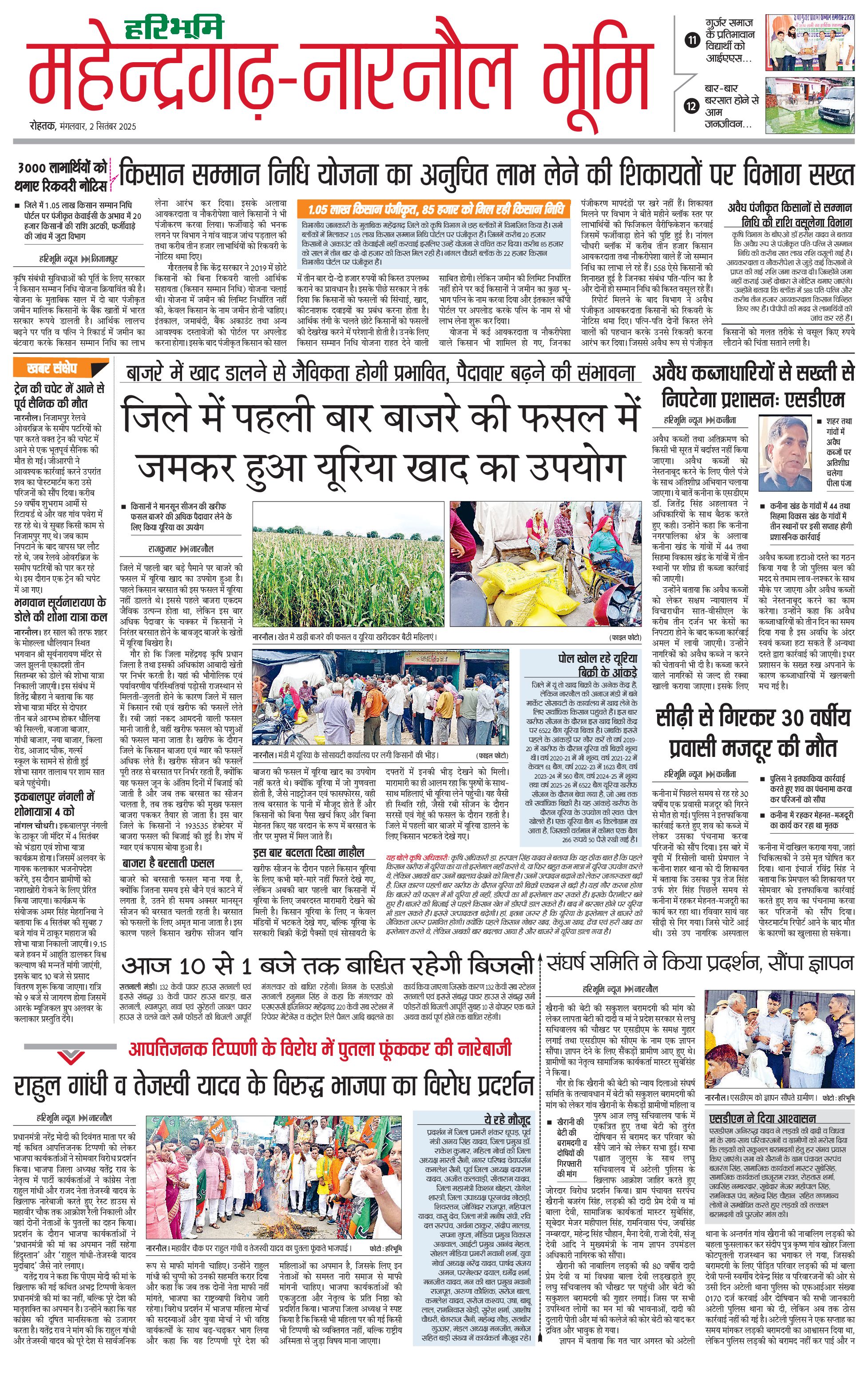 महेंद्रगढ़ - 02 Sep 2025 - - Page 1
