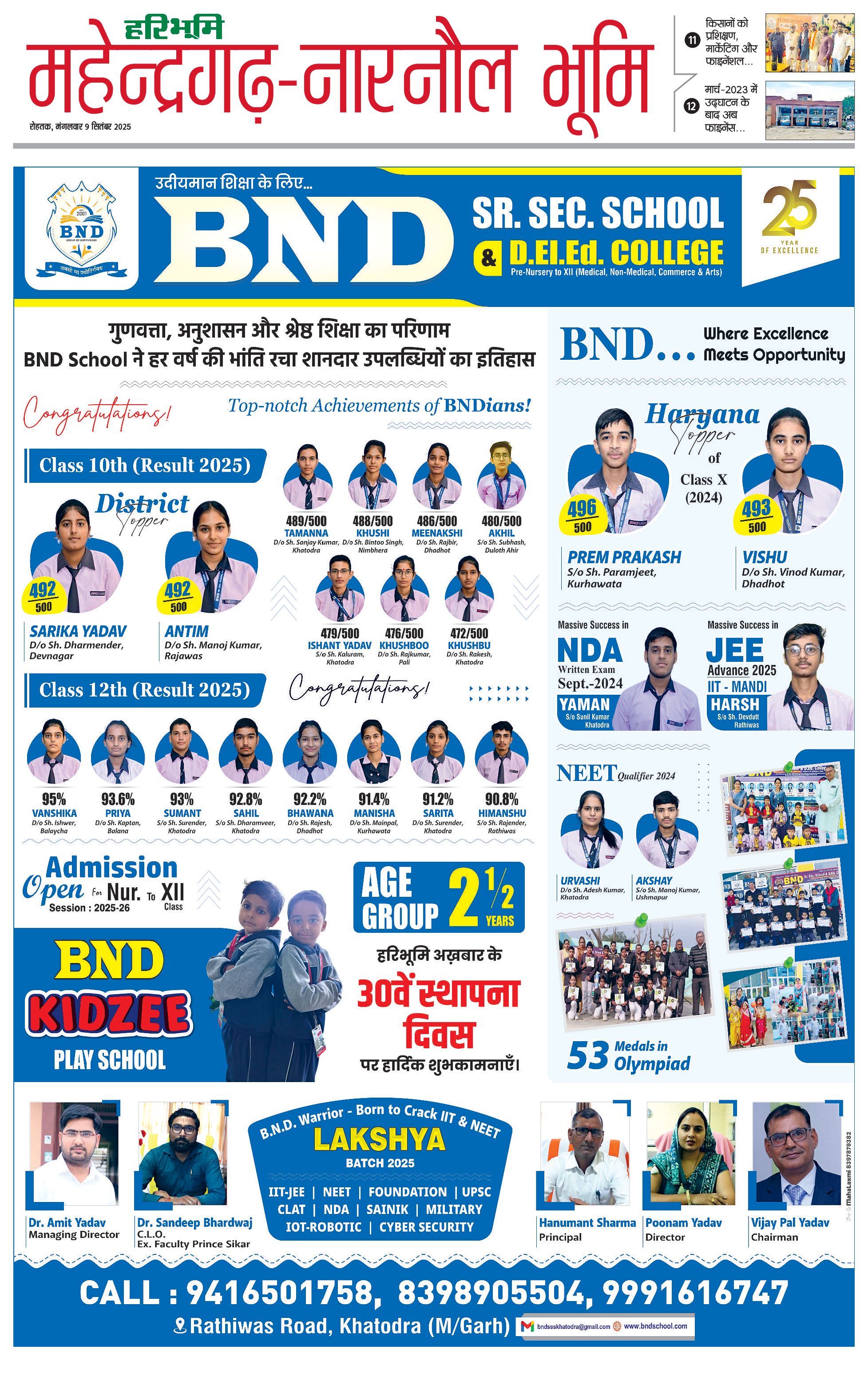 महेंद्रगढ़ - 09 Sep 2025 - - Page 1