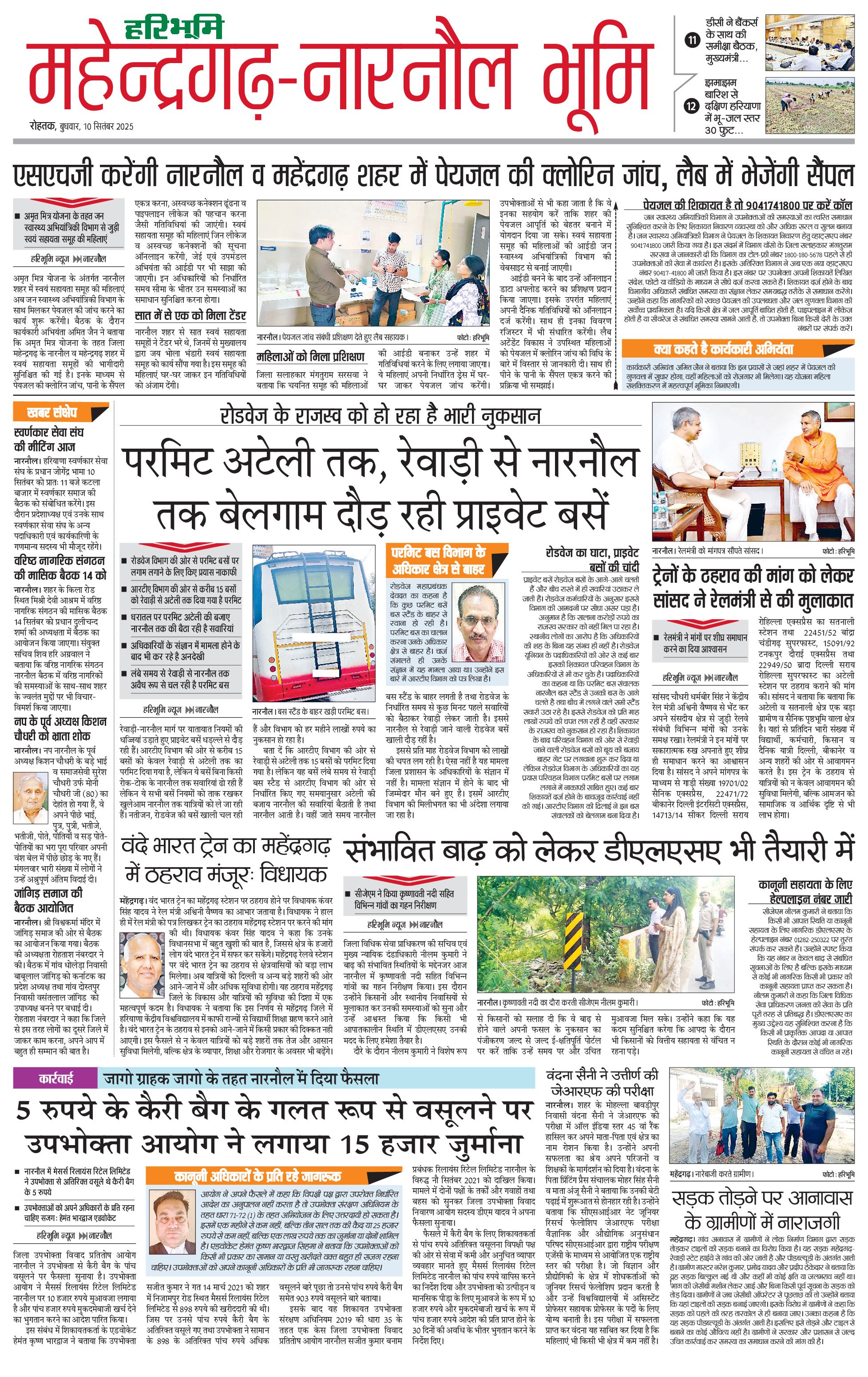 महेंद्रगढ़ - 10 Sep 2025 - - Page 1