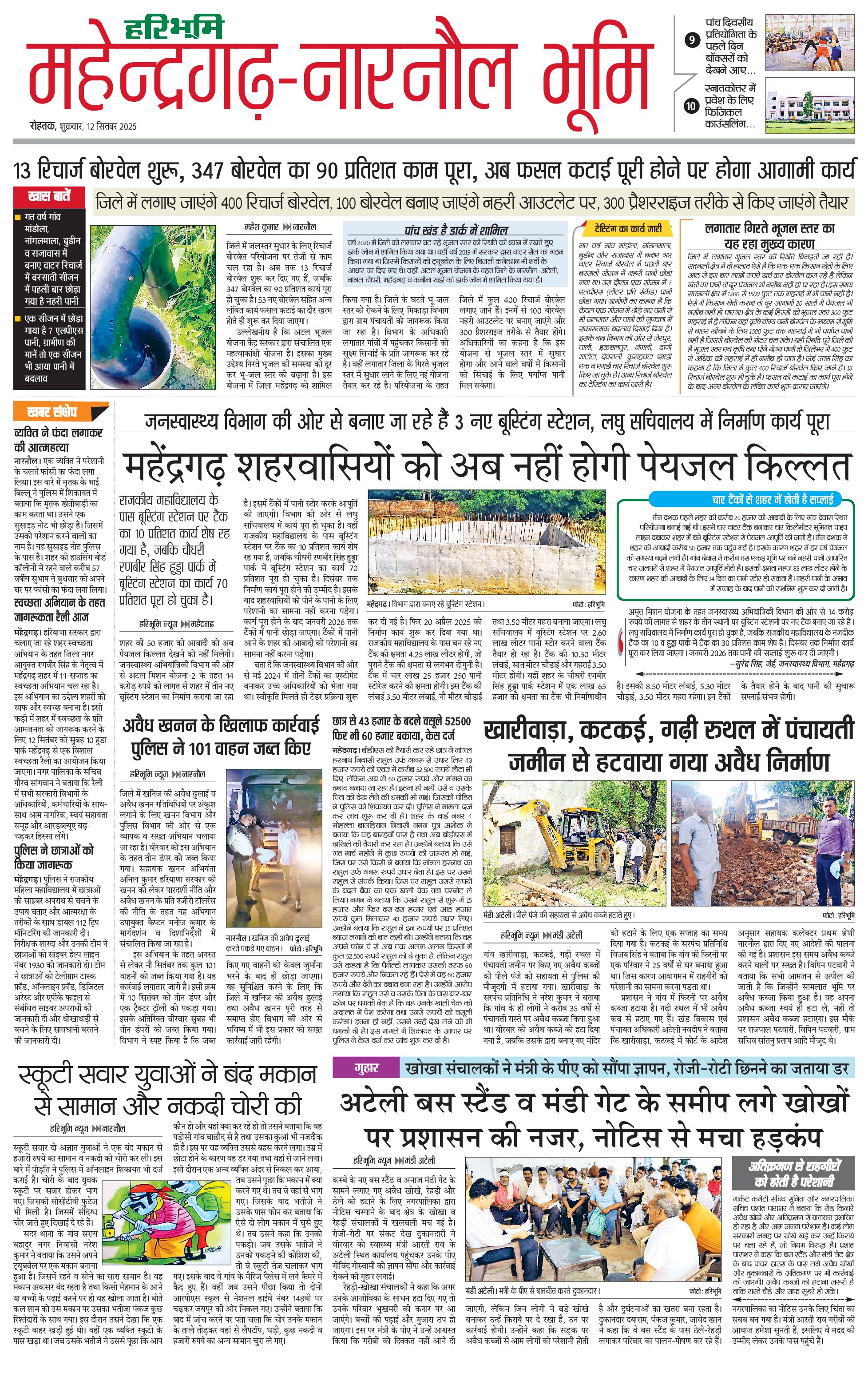 महेंद्रगढ़ - 12 Sep 2025 - - Page 1