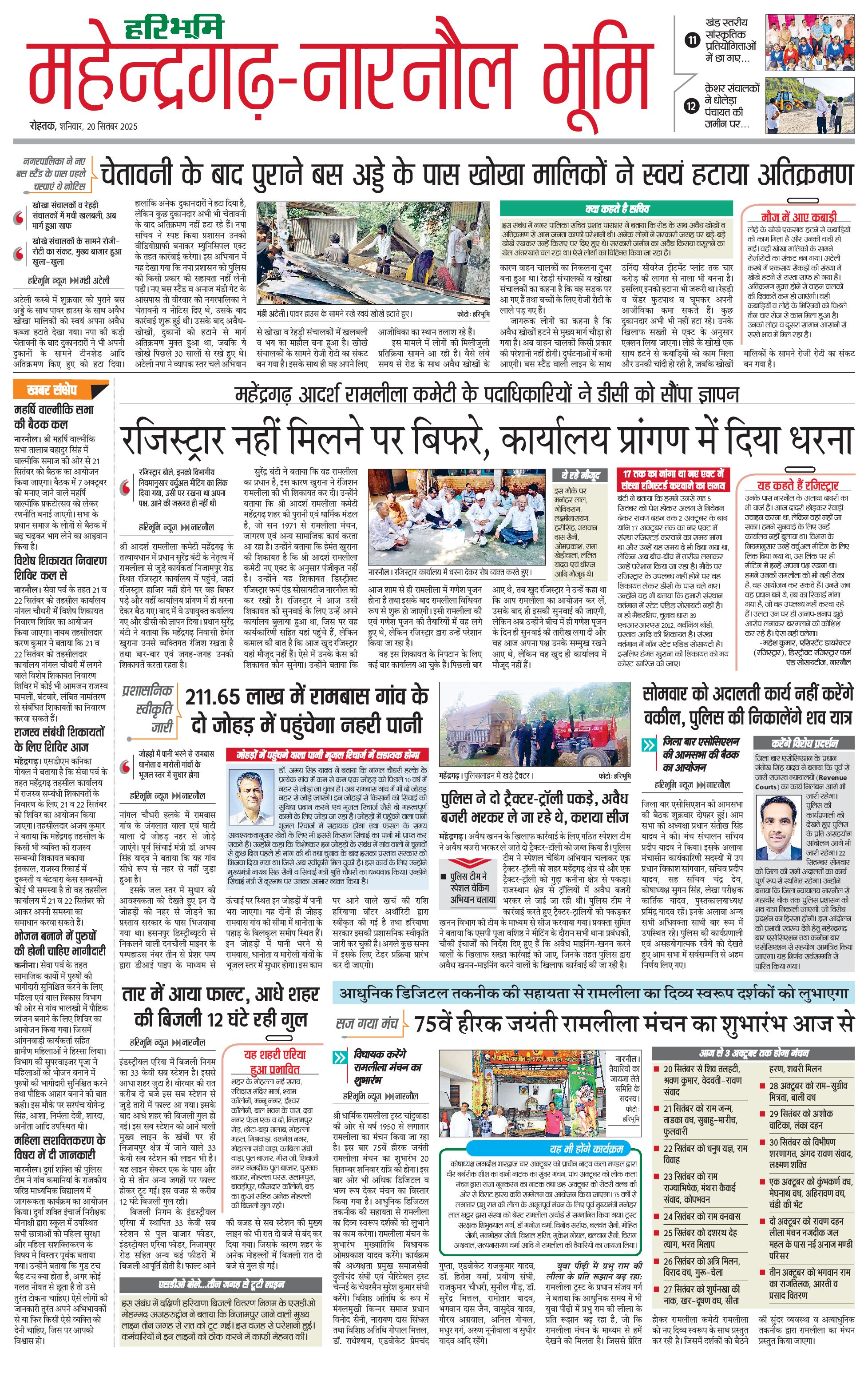 महेंद्रगढ़ - 20 Sep 2025 - - Page 1